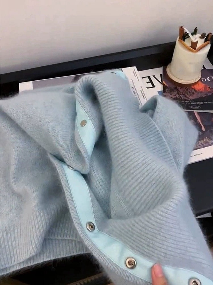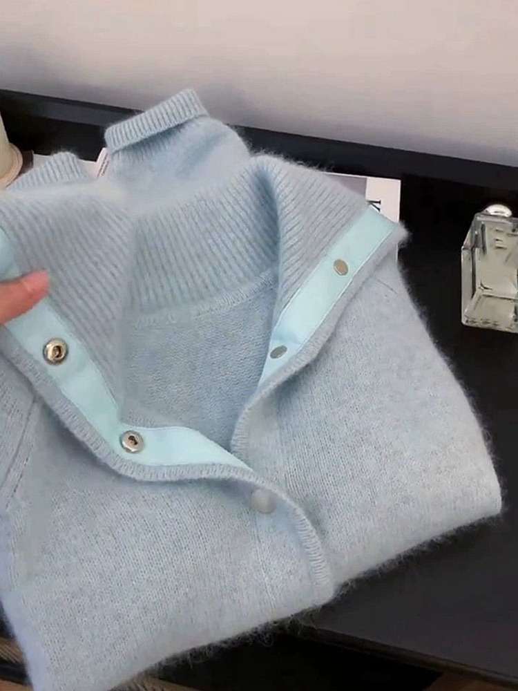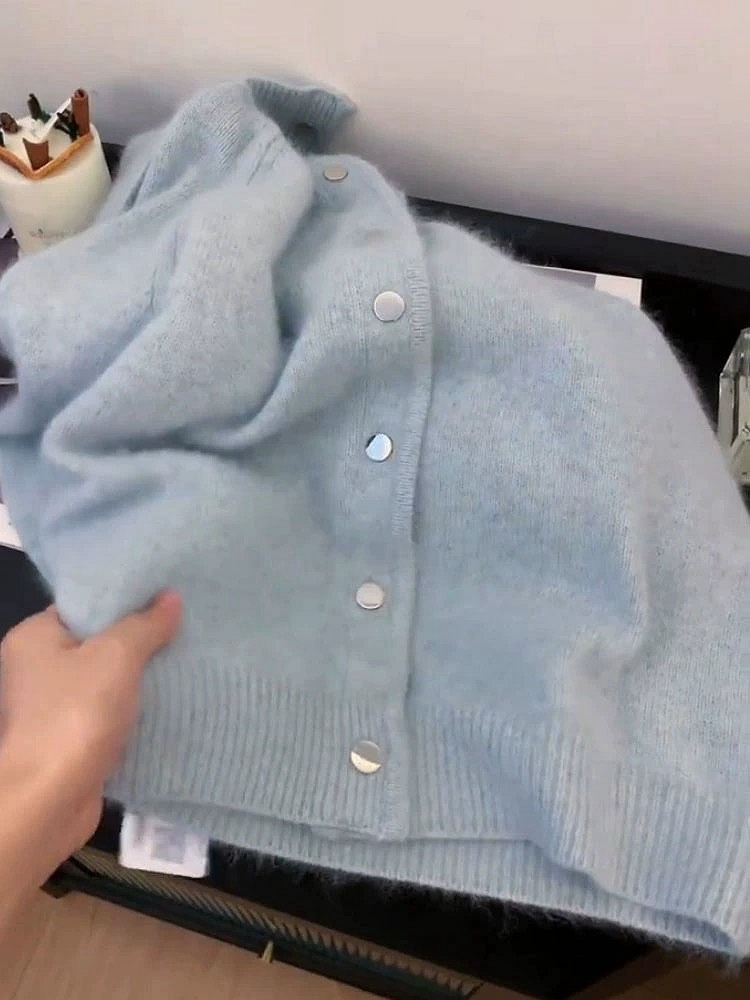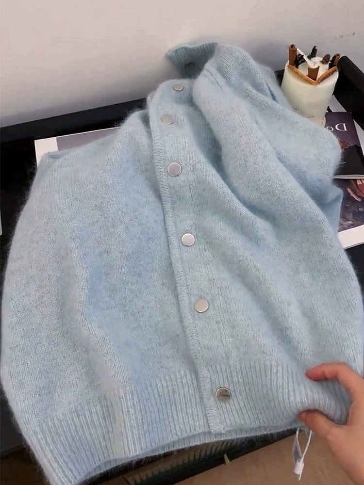 Главная страница > 2025 новый осенне-зимний стильный мягкий и нежный синий мохеровый свитер-кардиган, модный и доступный для дропшиппинга.