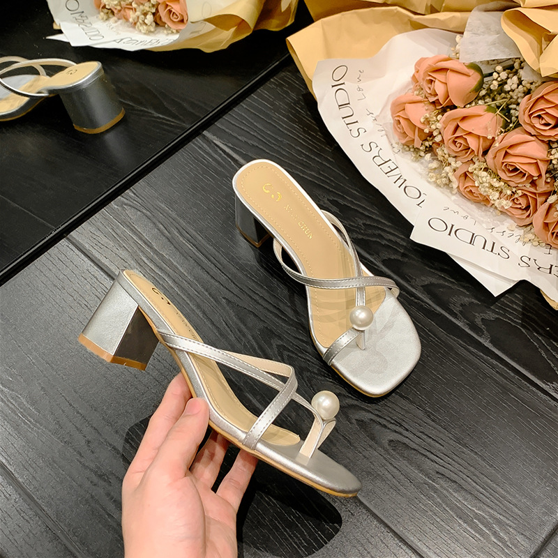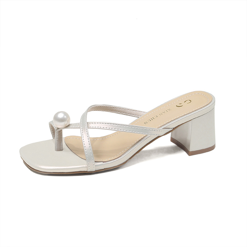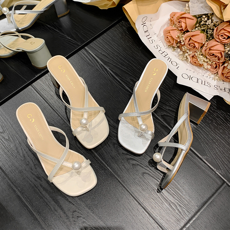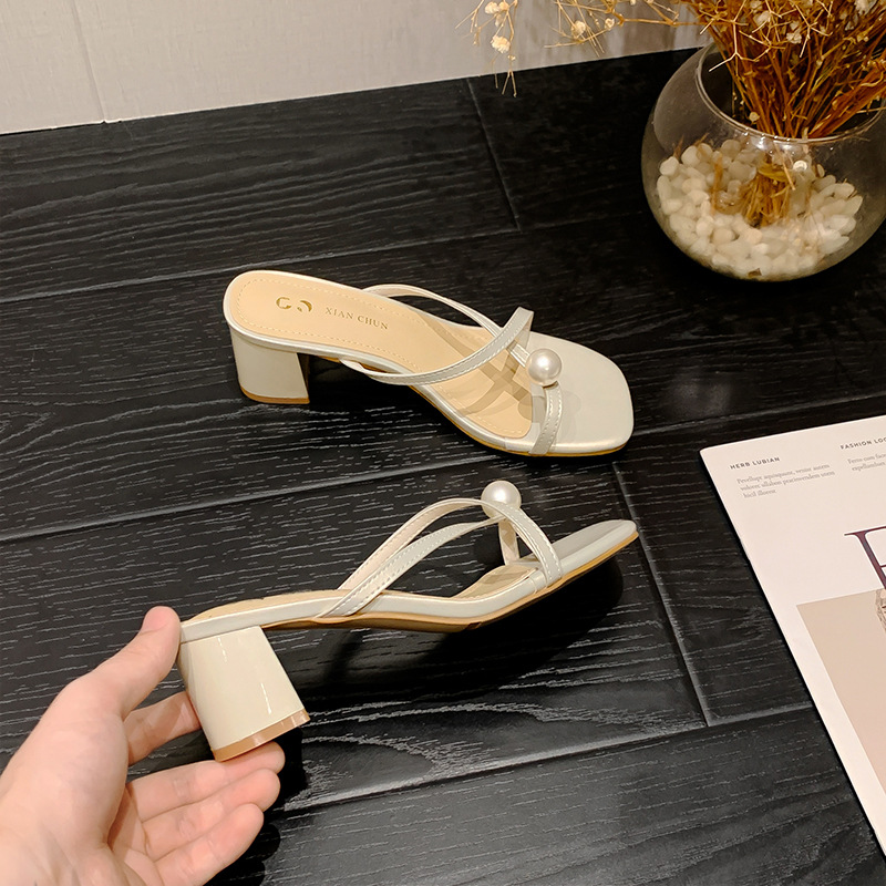 Главная страница > Маленький размер сандалии для женщин 313233 внешний износ Коренастый каблук жемчуг тапочки Лето 2024 новые высокие каблуки 34
