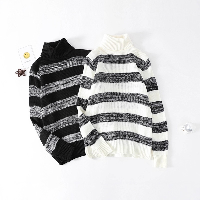 Главная страница > Осенне-зимняя новая мужская жаккардовая трикотажная Базовая рубашка с высоким воротником в полоску в наличии тонкий свитер для волос поколения