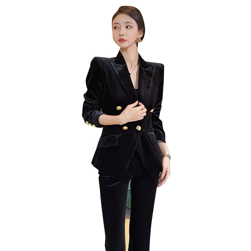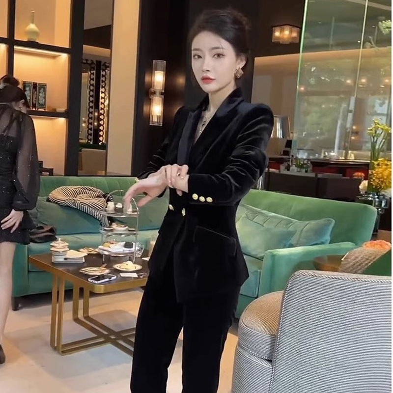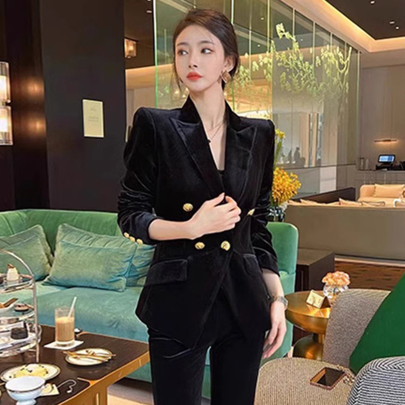 Осенняя и зимняя соль светло-зрелый золотой бархатный костюм костюм для женщин высокого уровня профессиональный костюм