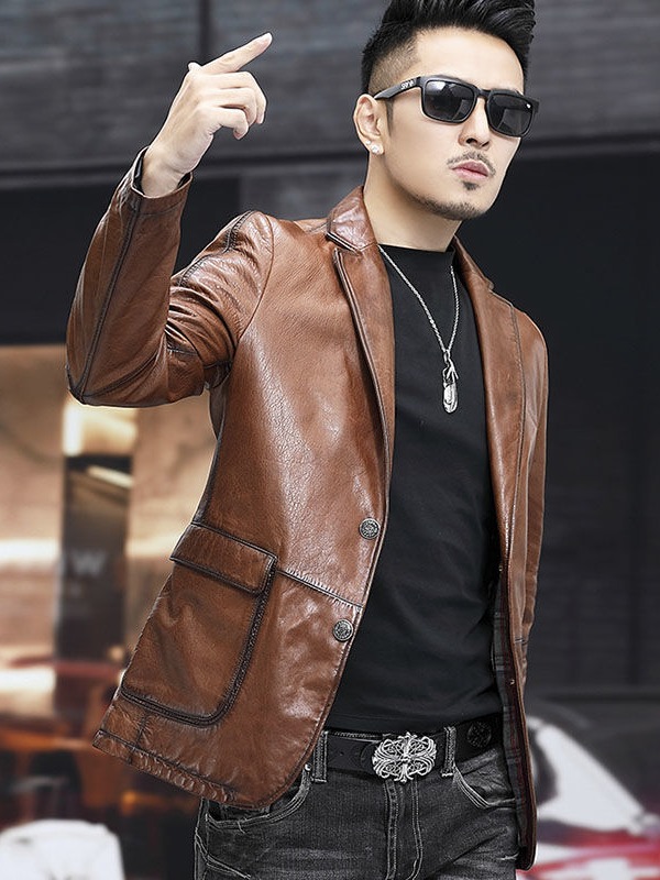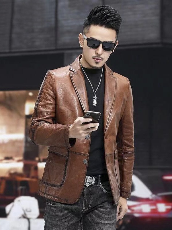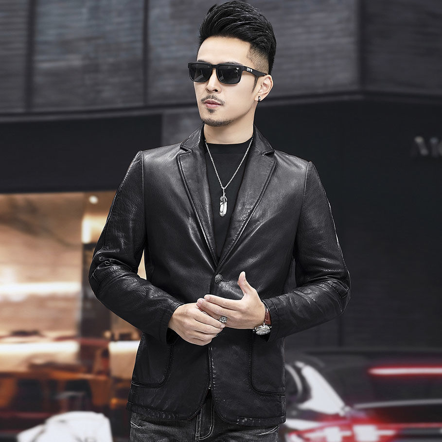 Главная страница > Новая кожаная куртка Haining, мужская корейская стильная модная тонкая и красивая короткая повседневная кожаная куртка с воротником, мужская куртка