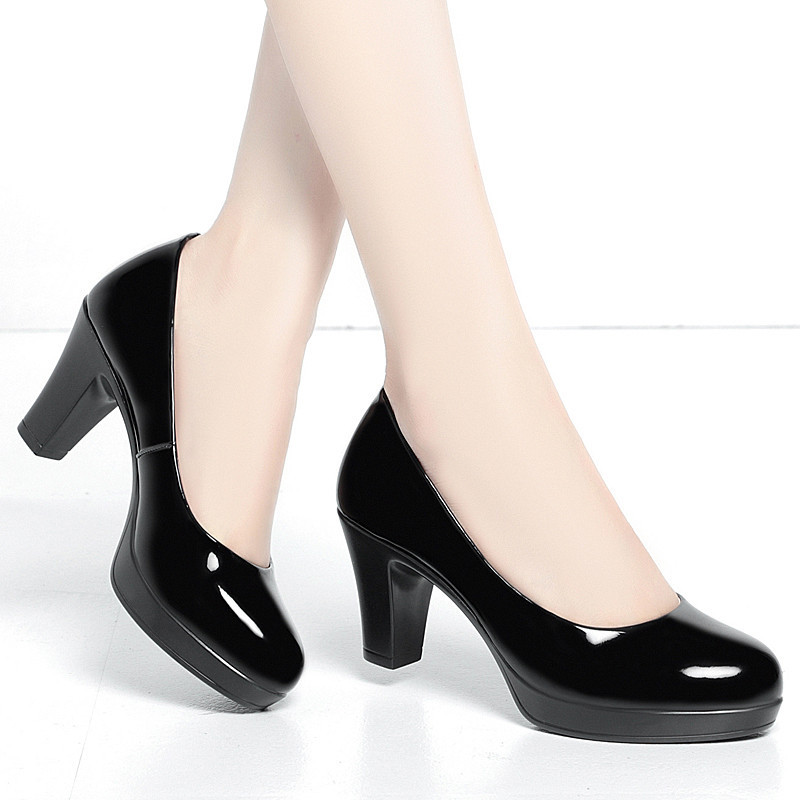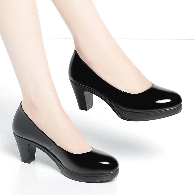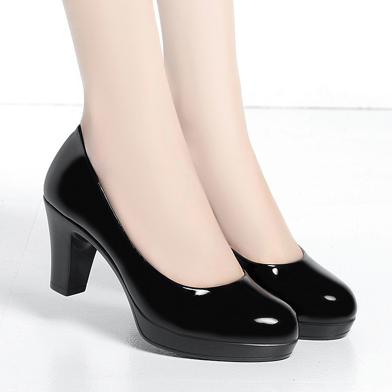 Главная страница > Рабочая обувь женская черная женская кожаная обувь на высоком каблуке Женская Толстая пятка работа интервью стюардесса одиночная обувь Яркие Кожаные универсальные весна и осень