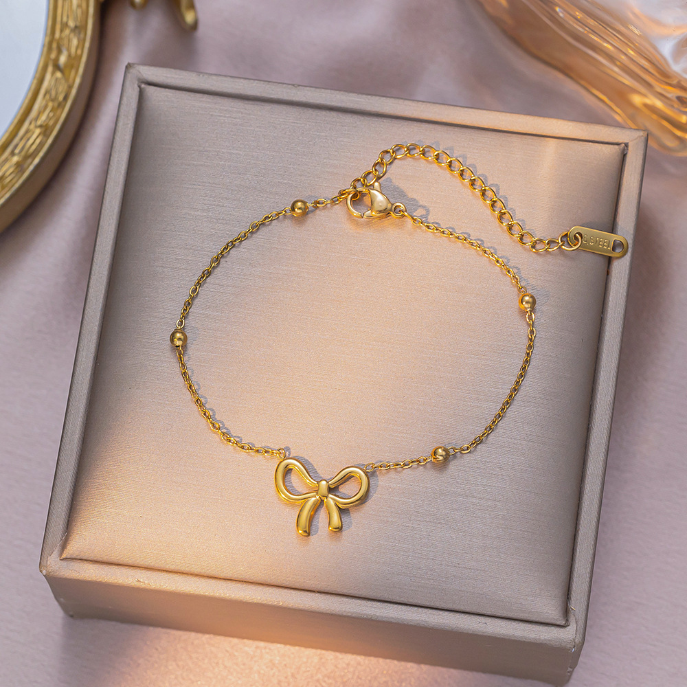 Главная страница > Новый сладкий побег принцессы с бантом и круглыми бусинами, браслет из титановой стали, женские модные элегантные универсальные Простые Модные украшения для рук