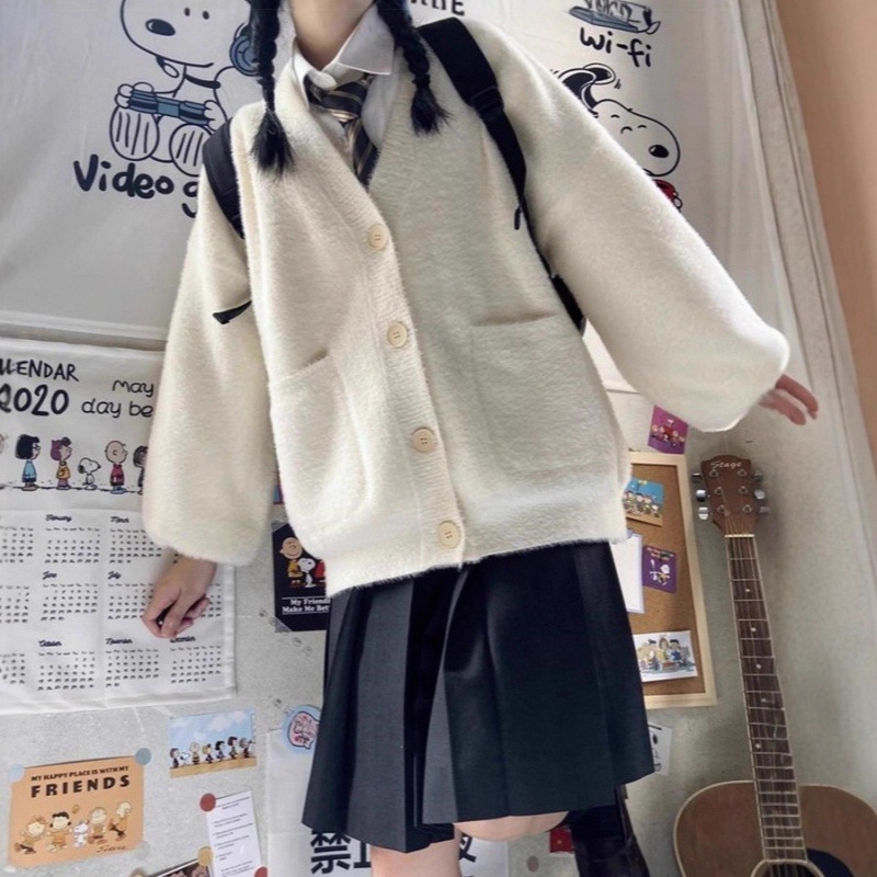 Главная страница > Мягкий вязаный свитер из искусственного меха норки для женщин, новая осенне-зимняя мода, универсальный, в стиле преппи, свободный и толстый женский жакет.