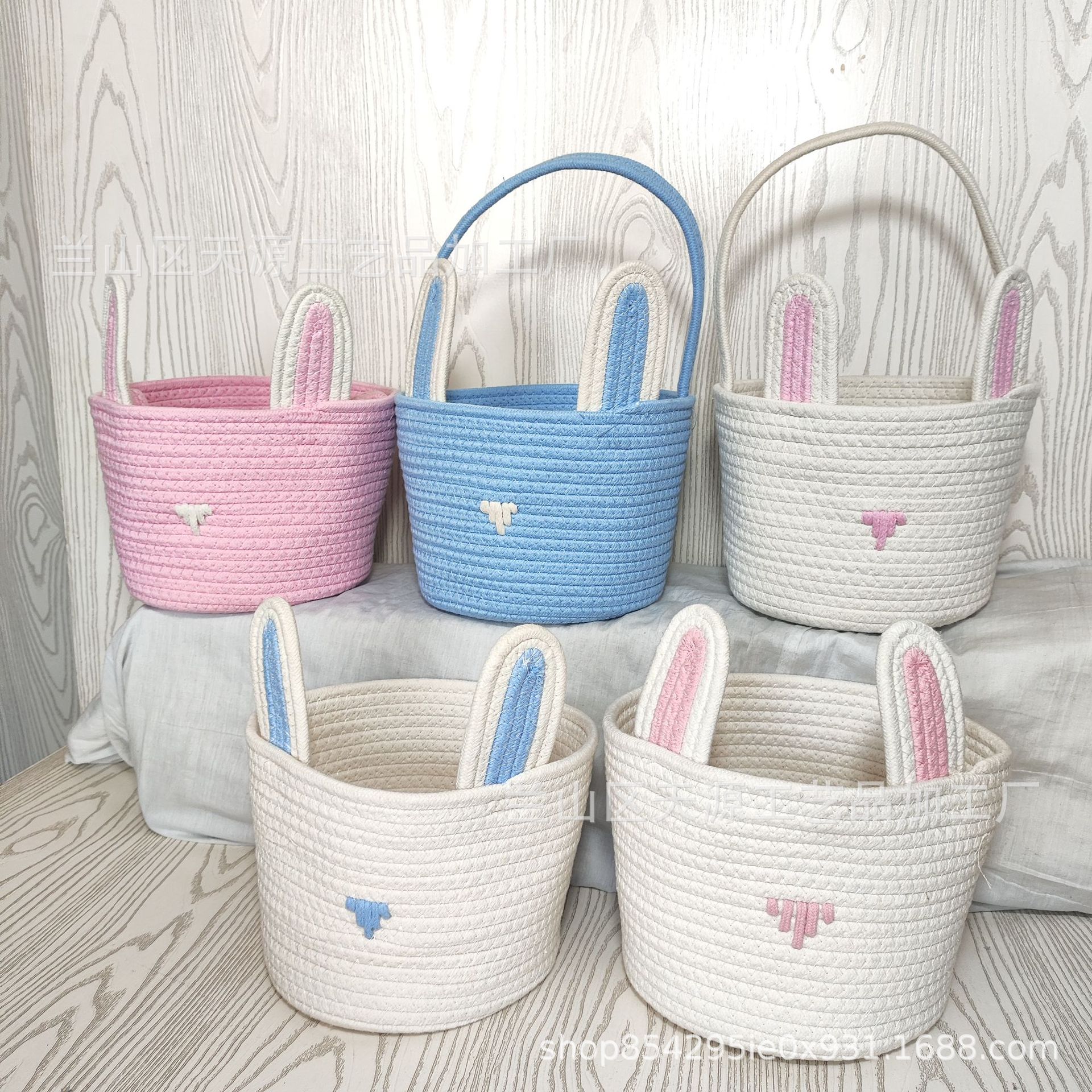 Главная страница > Хлопковая веревка ручной работы Корзина для хранения кроличьих ушей Корзина для детских игрушек Милая Бытовая корзина для хранения косметики в общежитии