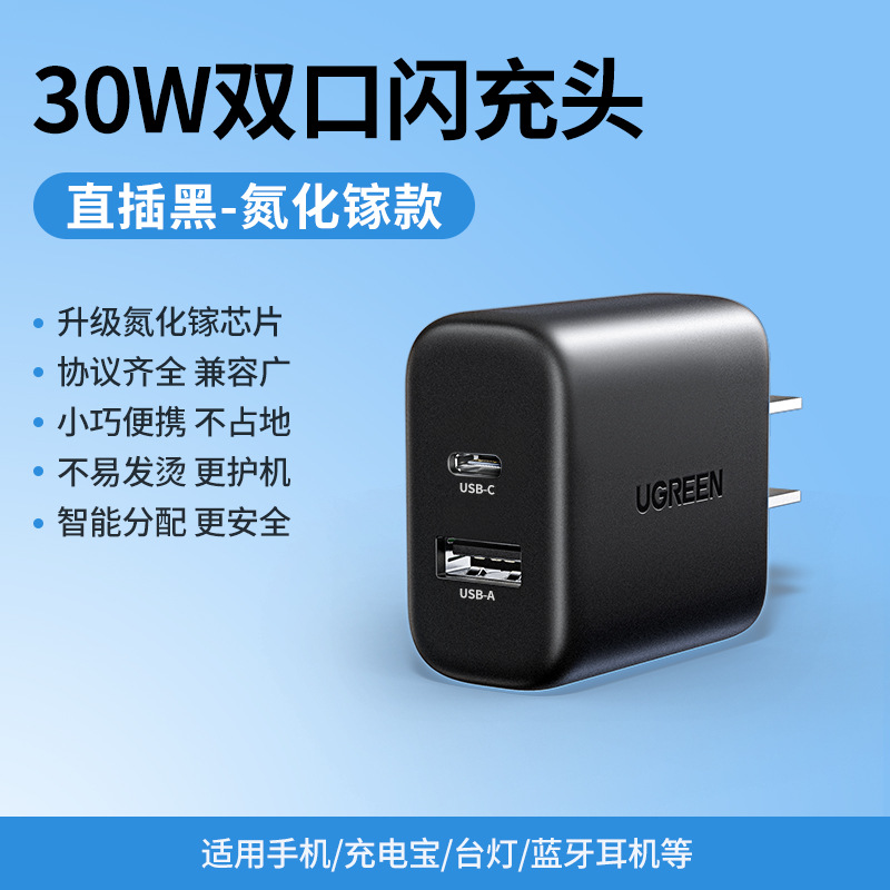 [Новое обновление] 30 Вт丨Двухпортовый USB+PD丨Прямая вилка-черный