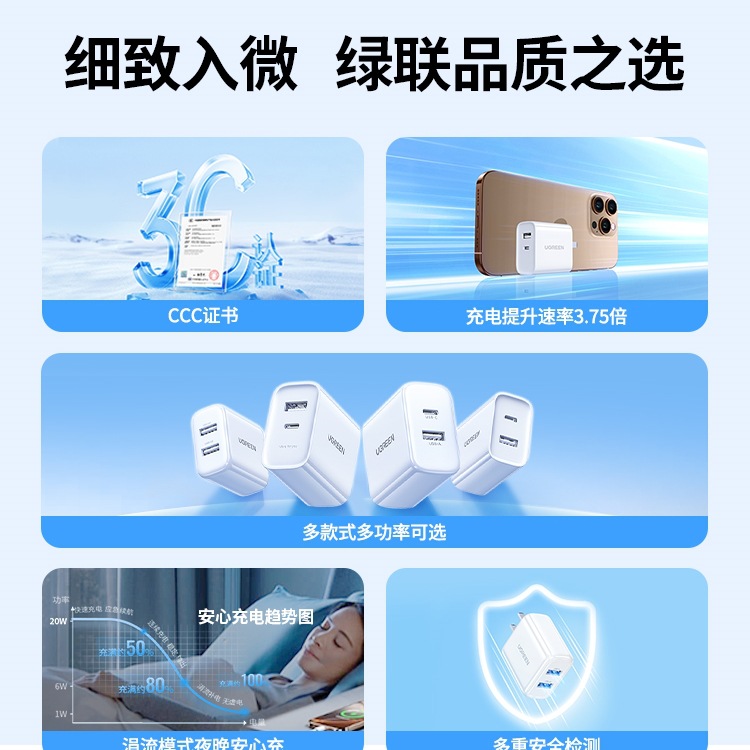 Green Union 20w Двухгорловая головка зарядного устройства подходит для Apple 16eiphone15pro14max13ipad Huawei Xiaomi