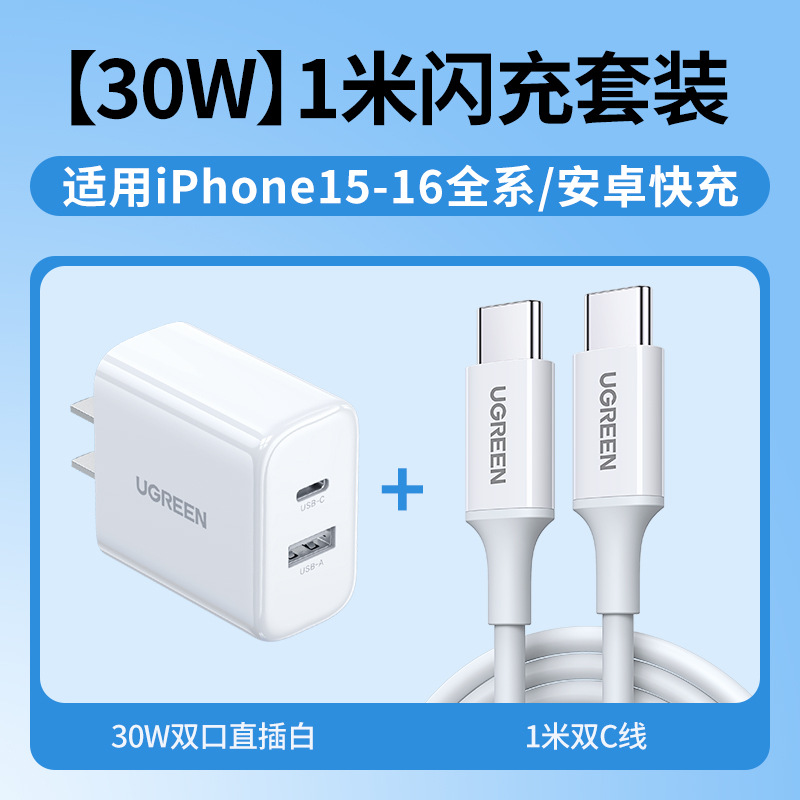 【Новое обновление|Зарядка вспышки серии 15-16] Двойной порт 30 Вт + 1m кабеля C-C