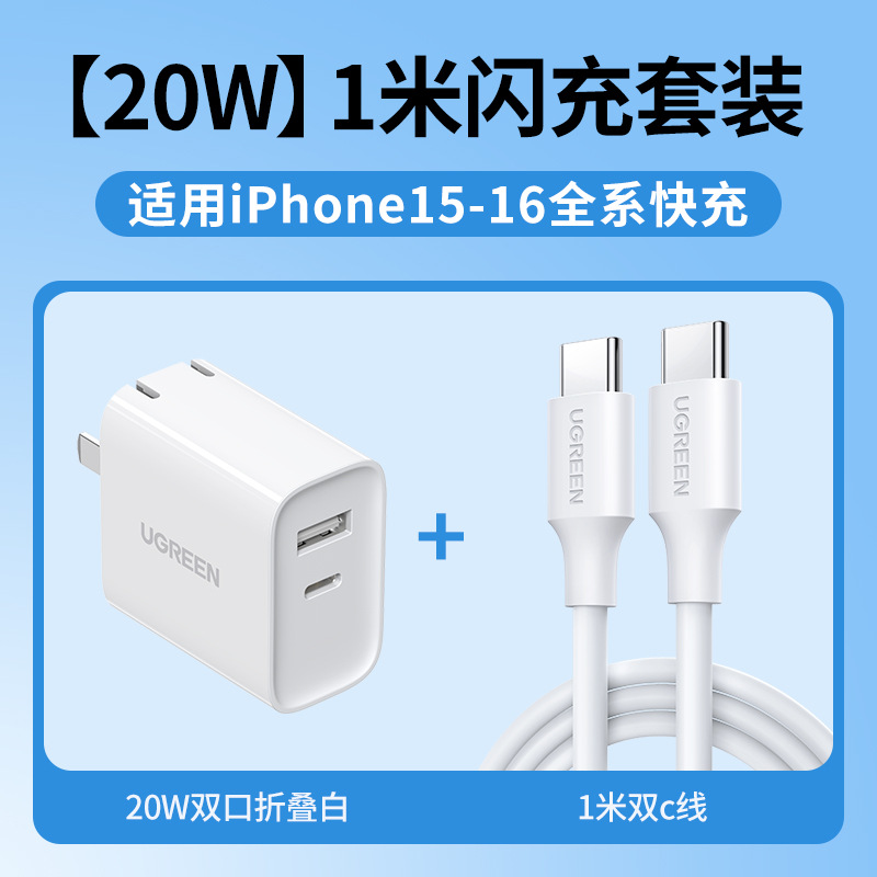 [Набор для зарядки вспышки серии 15-16] Двойной порт 20 Вт + 1m кабеля C-C