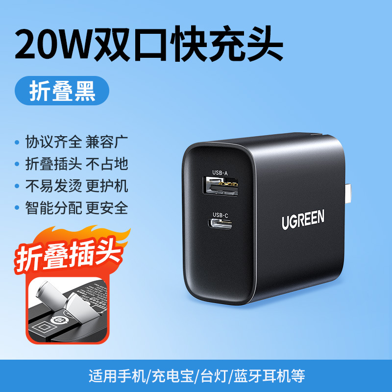 [Специальное предложение ограничено по времени] 20 Вт丨Двухпортовый USB+PD丨Прямая вилка-черный
