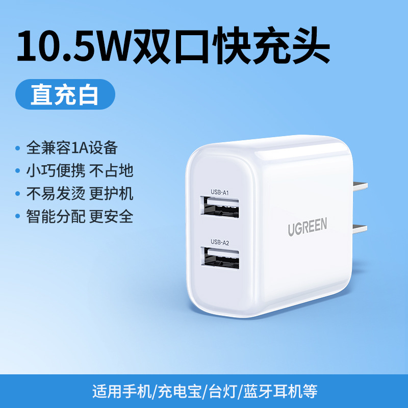 10,5 Вт| Двойной порт USB| Прямая вилка-белая