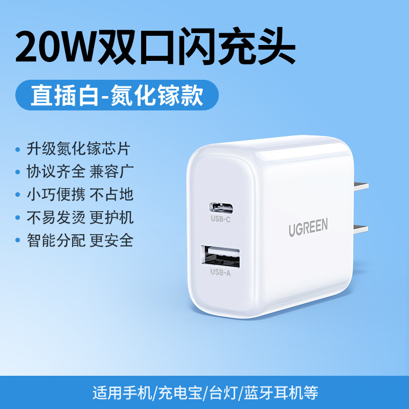 [Специальное предложение ограничено по времени] 20 Вт丨Двухпортовый USB+PD丨Прямая вилка, белый цвет