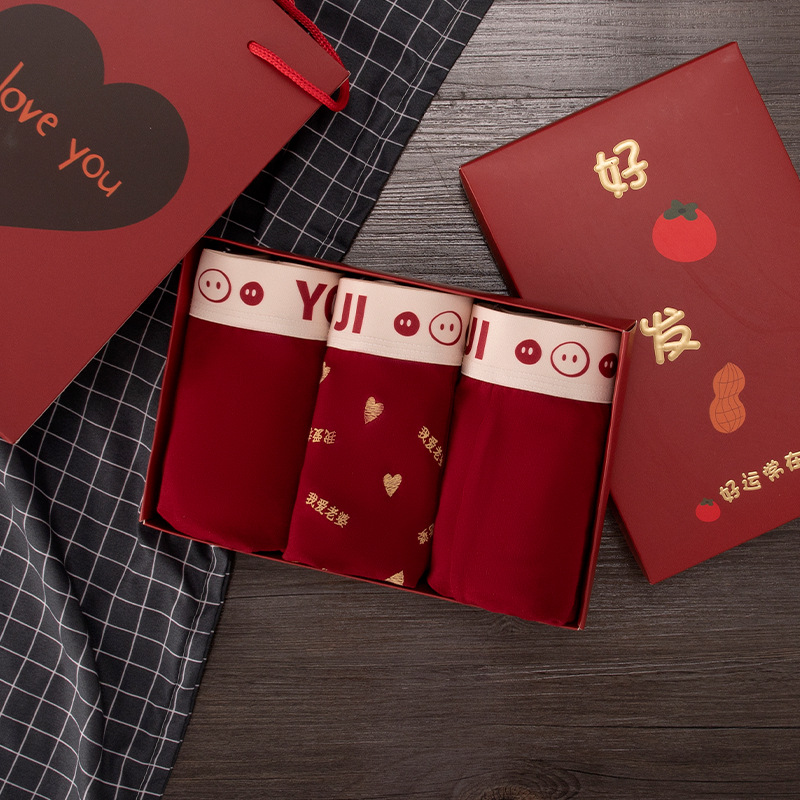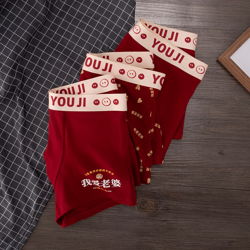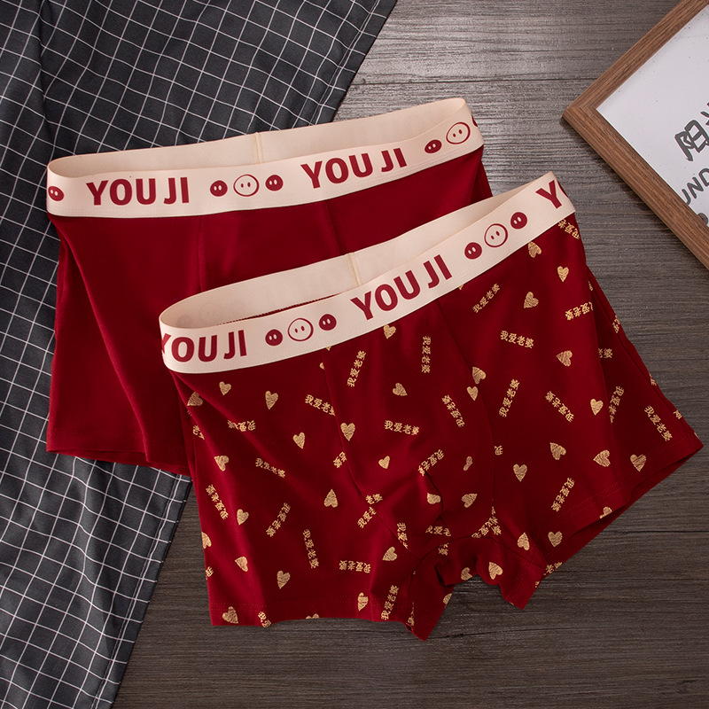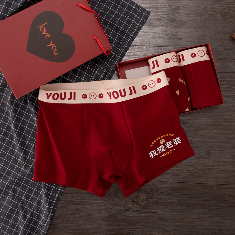 Взрывоопасные взрывы красное Мужское нижнее белье Боксеры хлопок Свадебный год красный я люблю жена Боксеры Шорты