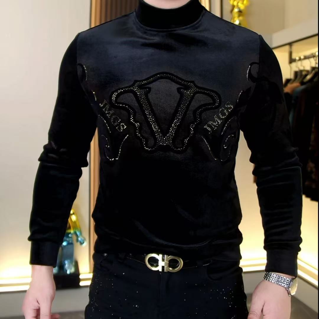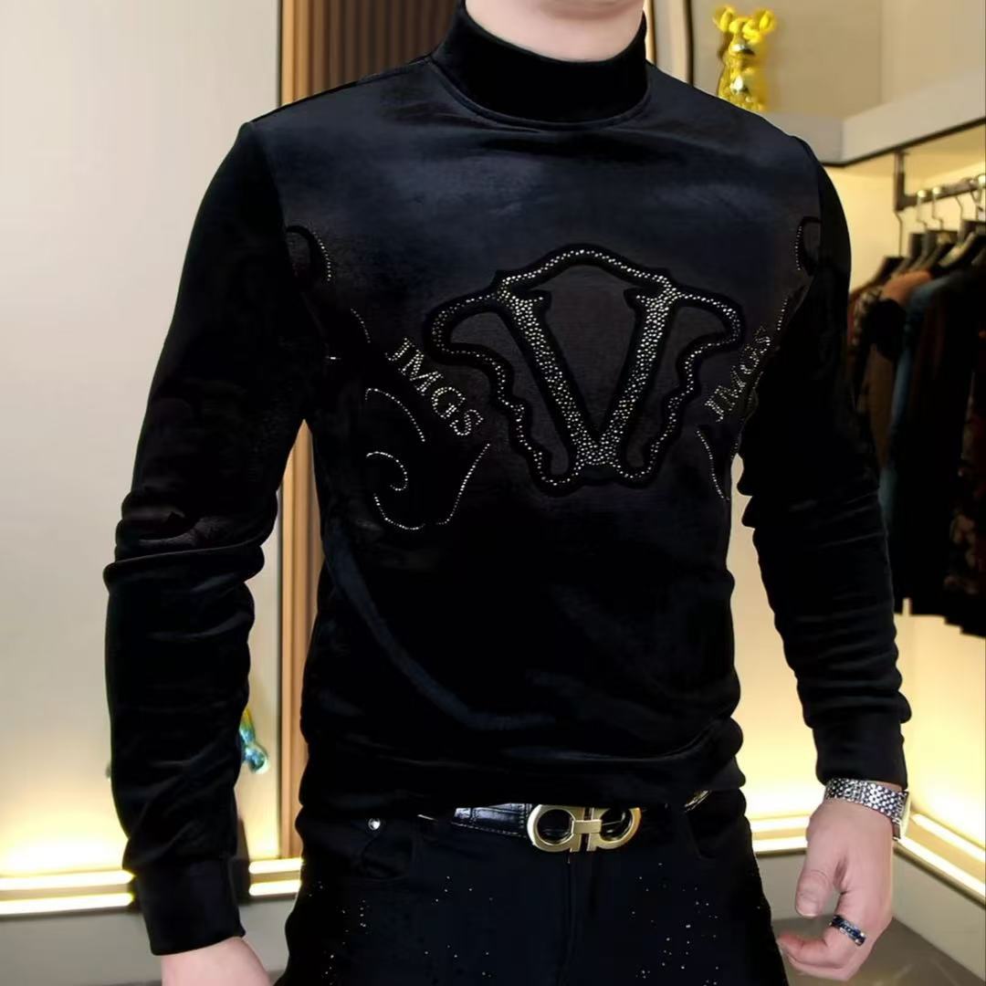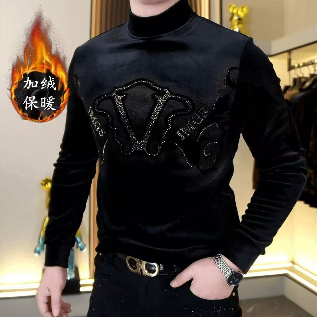 Главная страница > Осенние и зимние новые тенденции дикие золотые бархатные теплые свитера мужские высококачественные модные горячее донные футболки с длинными рукавами
