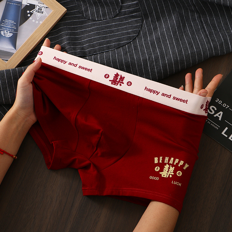 Главная страница > Год рождения Мужское нижнее белье свадебное красное праздничное хлопковое нижнее белье Молодежные счастливые Дышащие Боксеры на голову