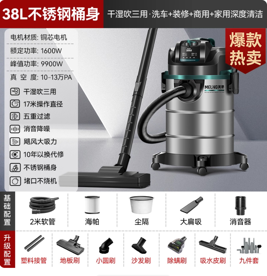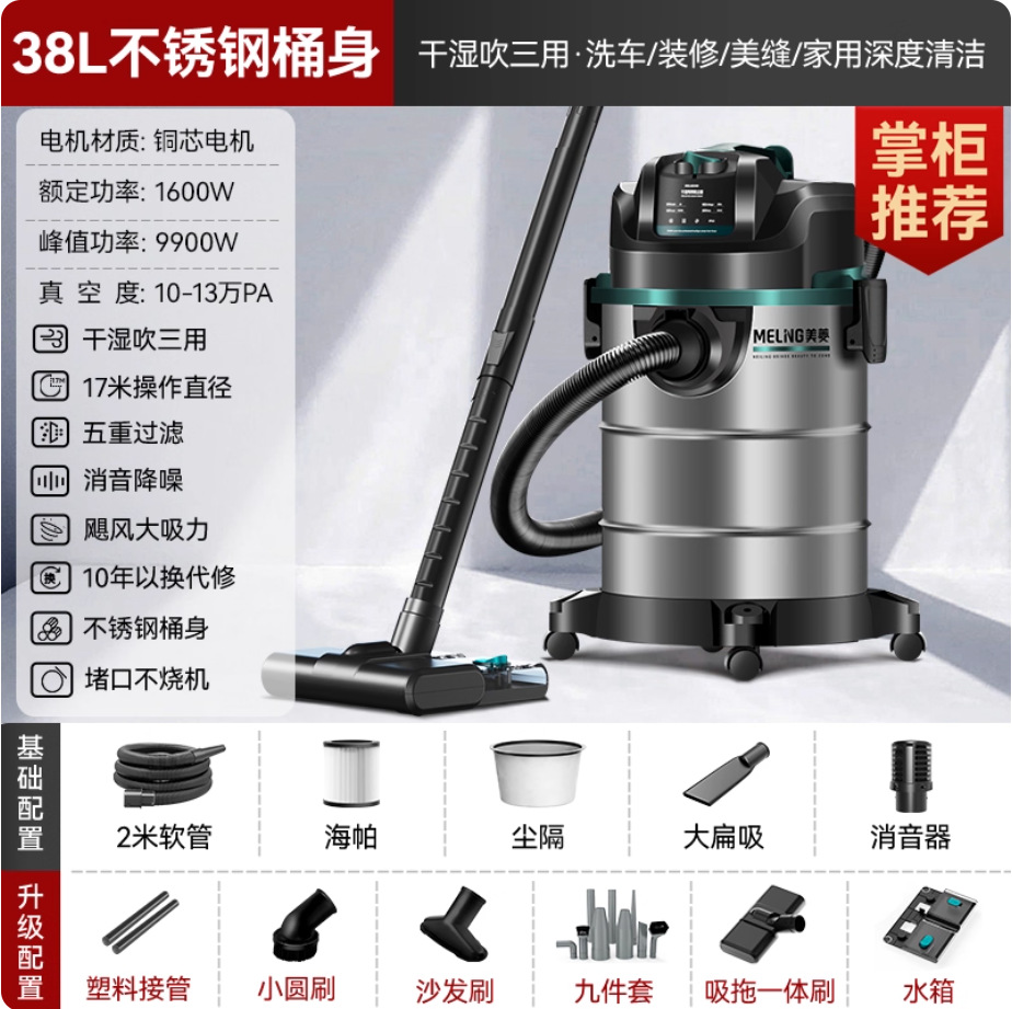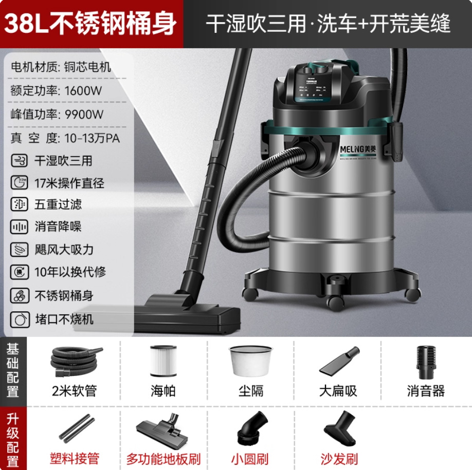 [28 миллионов мощности всасывания + 9800 Вт кинетической энергии] 38-литровый бак из нержавеющей стали, премиальная версия – для мойки автомобилей + декоративного оформления + создания красивых швов + для домашнего использования