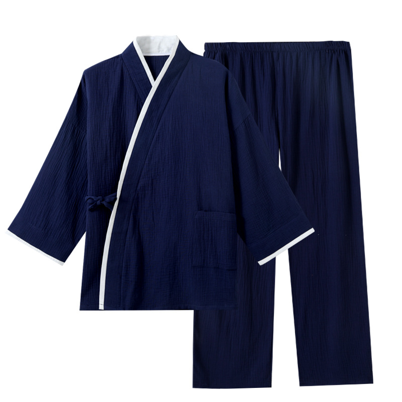 Главная страница > Креповый костюм для сауны из чистого хлопка в японском стиле, мужской костюм для сауны с длинными рукавами и длинными брюками, тонкое кимоно, комплект домашней одежды