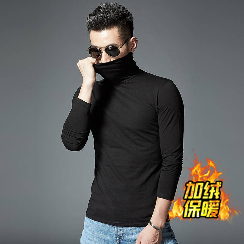 Главная страница > Осенне-зимняя мужская теплая Базовая рубашка с высоким воротником на флисовой подкладке, футболка с длинным рукавом, Мужская однотонная мужская футболка больших размеров, одежда