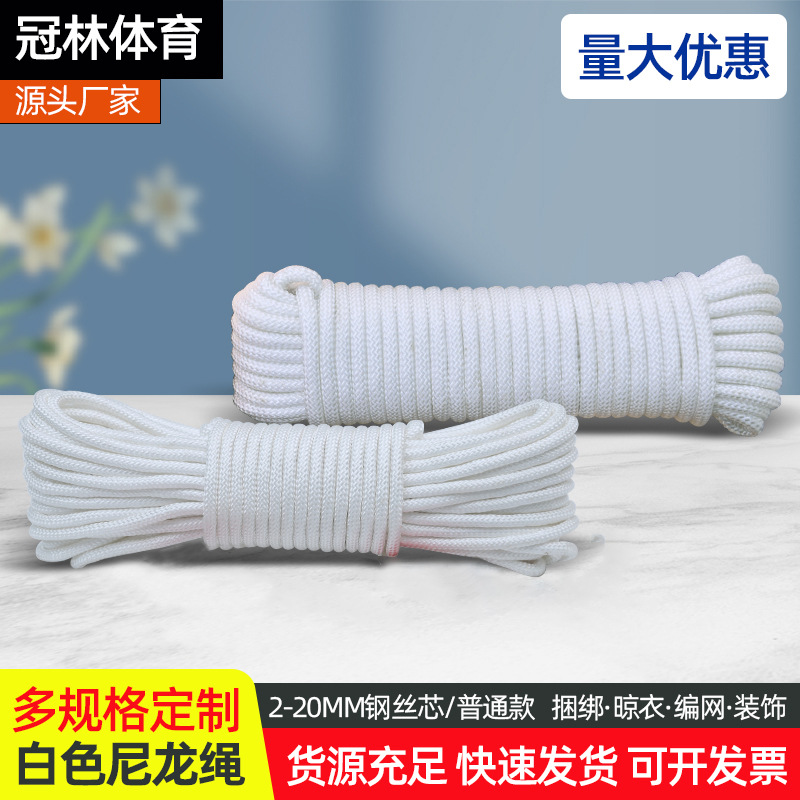 Порошковая веревка Нейлоновая плетеная веревка Белый переплет Палатка Спасательный канат Стальной трос Сердечник Нейлоновая веревка Побег Пожарная веревка
