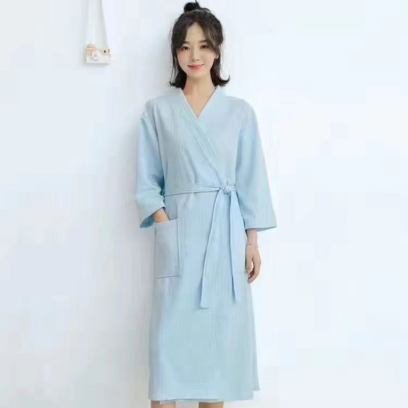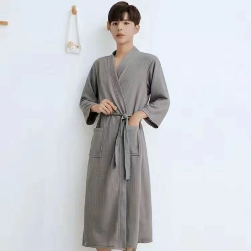 Весенне-осенний тонкий впитывающий халат, ночная рубашка большого размера, вафельный мужской и женский простой халат, халат для отеля, спальная зона для пары