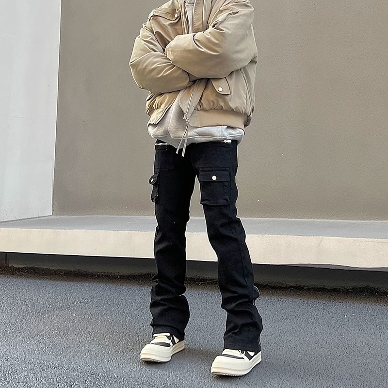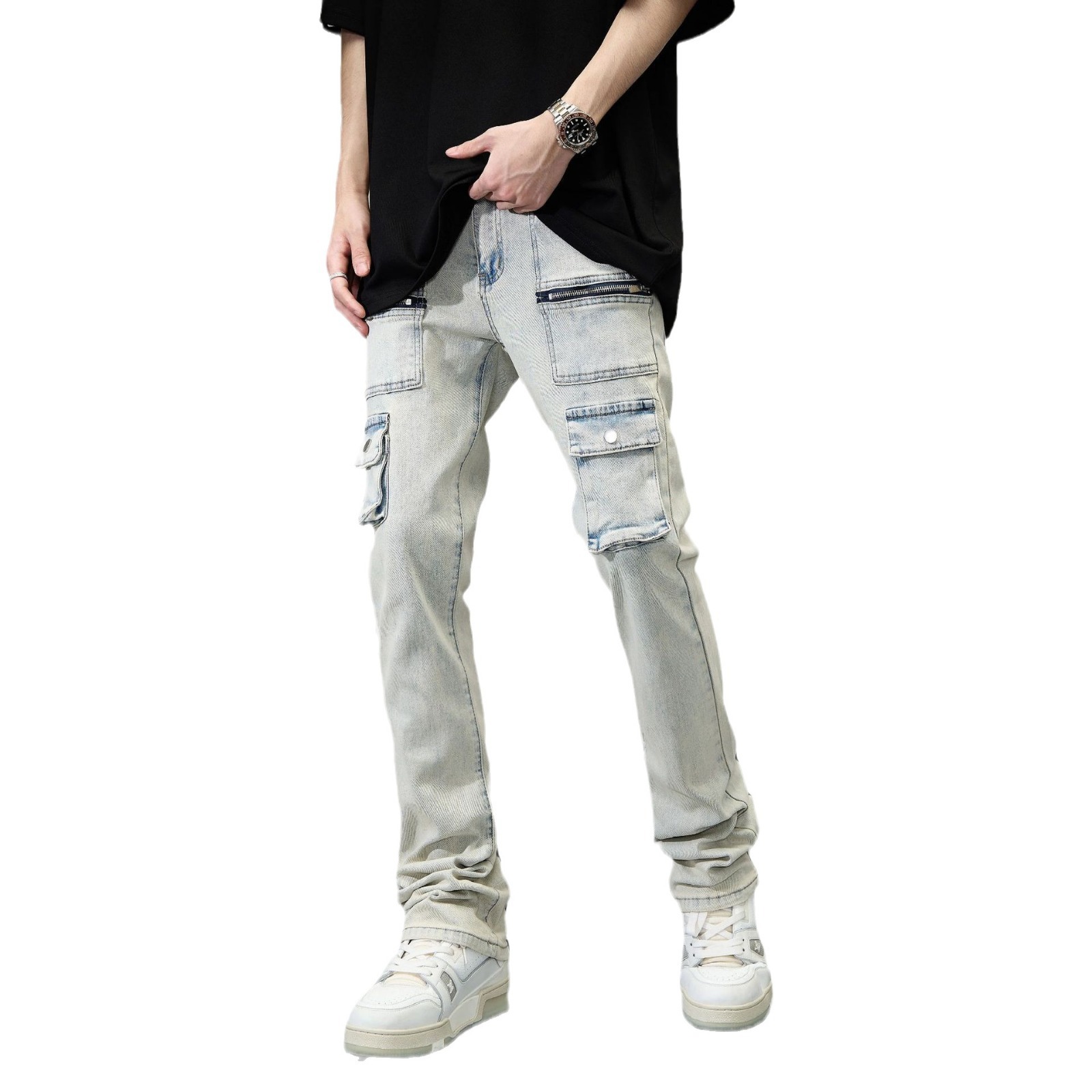 Главная страница > BAGGY JEANSM Американский ретро многокарманные эластичные джинсы мужской дизайн молния желтый грязевые брюки