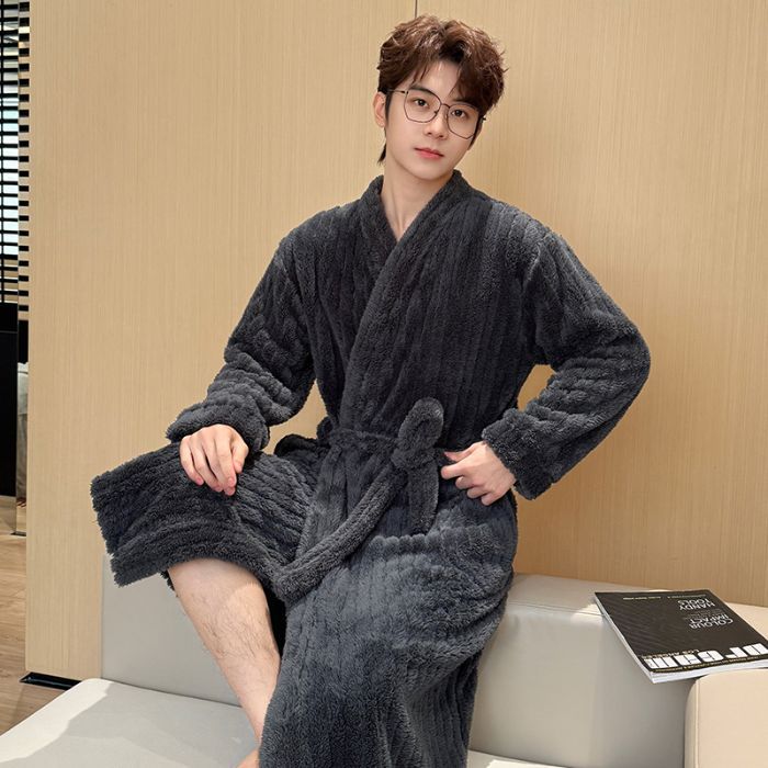 Главная страница > Осенний и зимний новый стиль пары с длинными рукавами, фланелевый кардиган, японский кимоно, халат, утолщенный, теплая домашняя одежда
