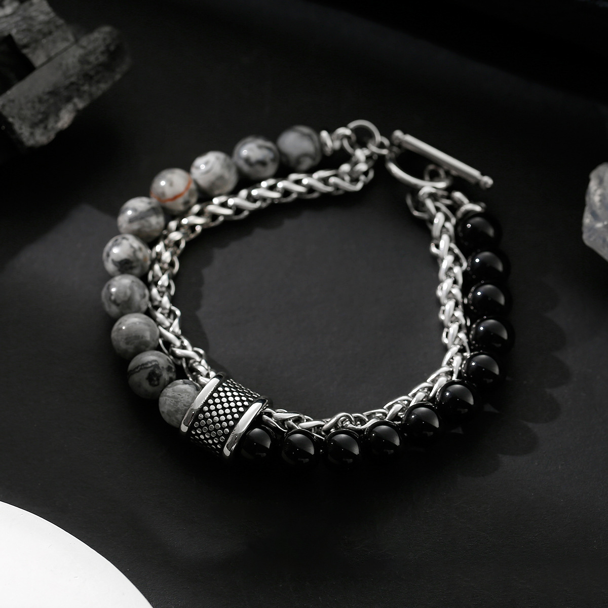 S050-A (двухслойный браслет из черного драгоценного камня)