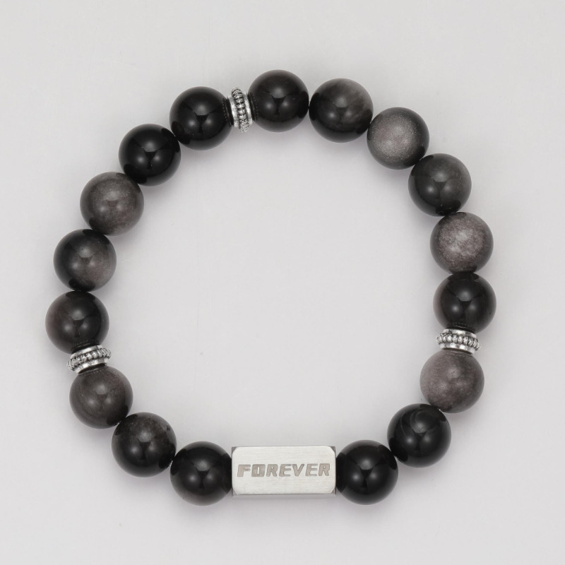 S130-B (браслет из серебряного обсидиана с буквой навсегда)