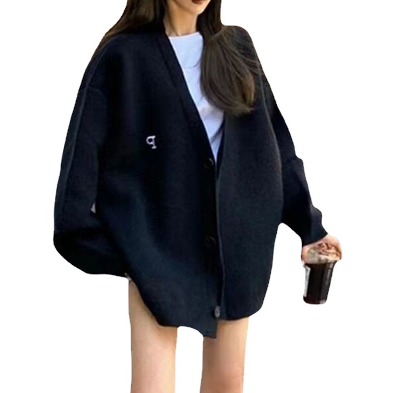 Главная страница > Свитер в ленивом стиле для женщин, оптовая продажа, осень-зима 2021, новая верхняя одежда, свободный вязаный кардиган с вышивкой букв, топ