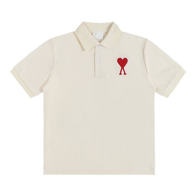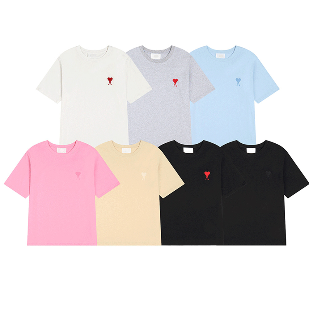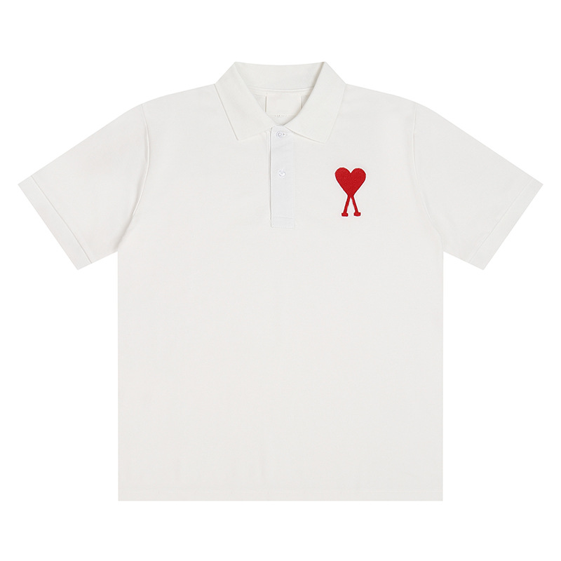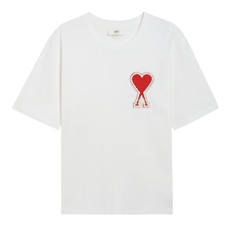 Главная страница > Ami clams Весна и лето маленькая любовь вышивка с круглым вырезом с короткими рукавами футболка рубашка POLOP для мужчин и женщин свободный повседневный топ через границу