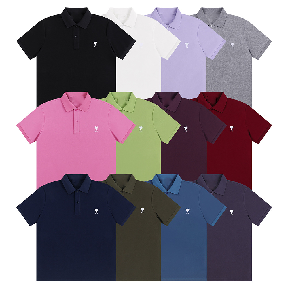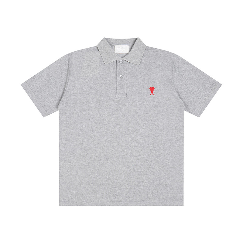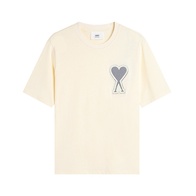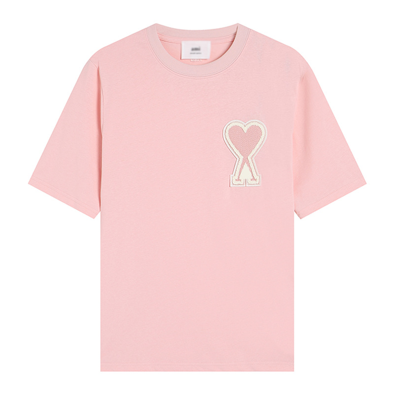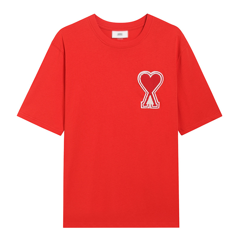 Главная страница > Ami clams Весна и лето маленькая любовь вышивка с круглым вырезом с короткими рукавами футболка рубашка POLOP для мужчин и женщин свободный повседневный топ через границу