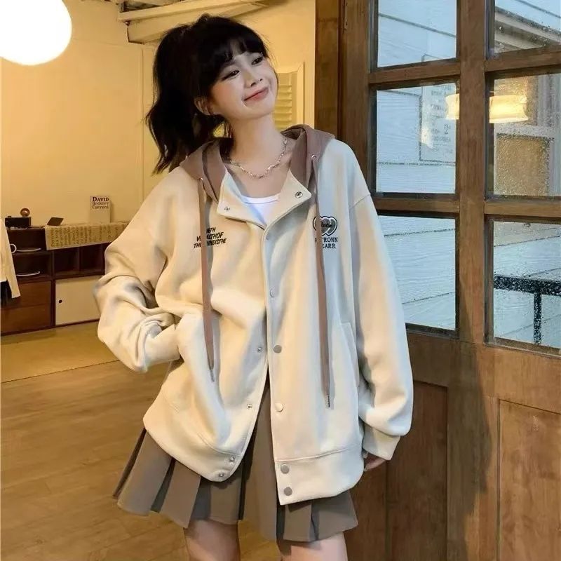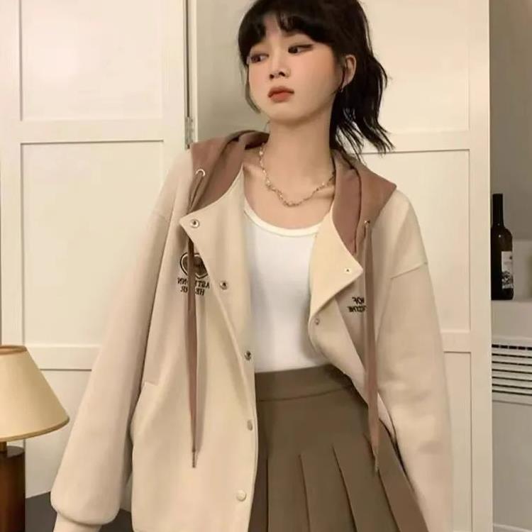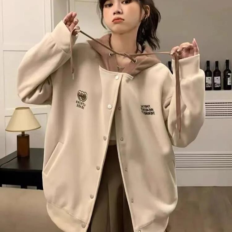 Американский ретро кардиган свитер бейсбольный костюм пальто женский осенью и зимой бархатный ленивый свободный маленький пиджак