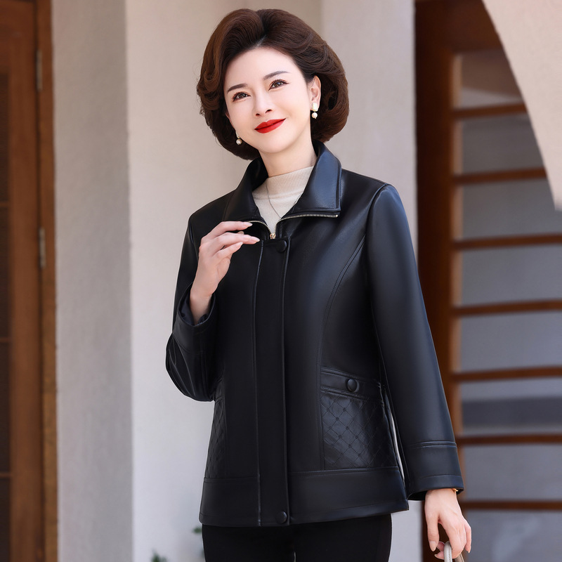 Главная страница > Осенние и зимние новые мамы среднего и пожилого возраста плюс бархатная теплая кожаная куртка свободная кожаная куртка дикая куртка женская пуу кожаный топ