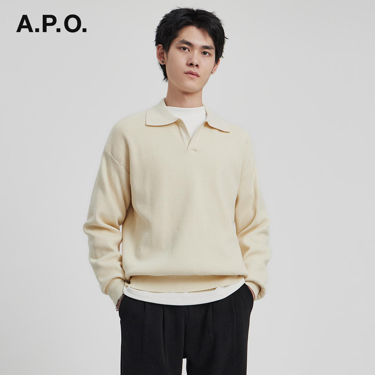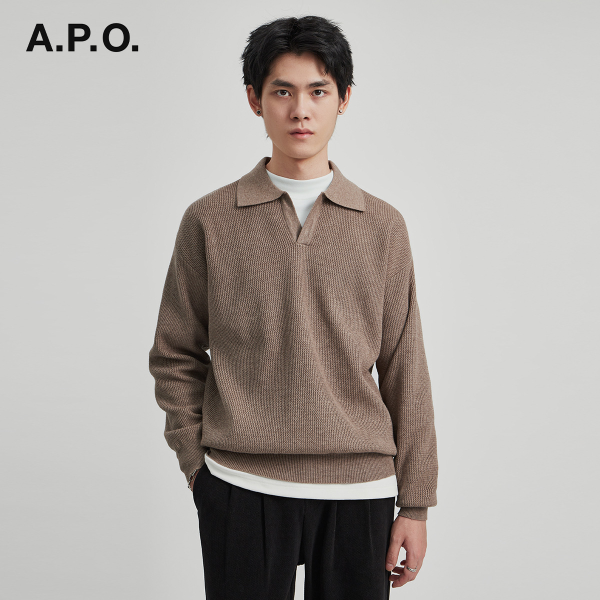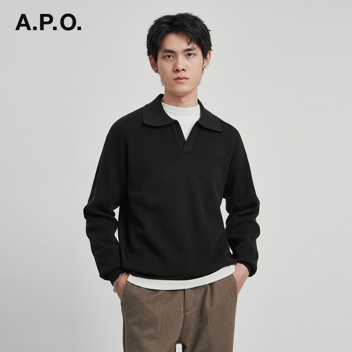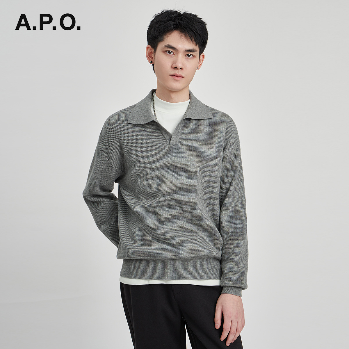 APO Мужской | свитер с лацканами мужской осенний анти-пиллинг с V-образным вырезом и длинным рукавом Топ свободный мужской свитер с воротником POLO