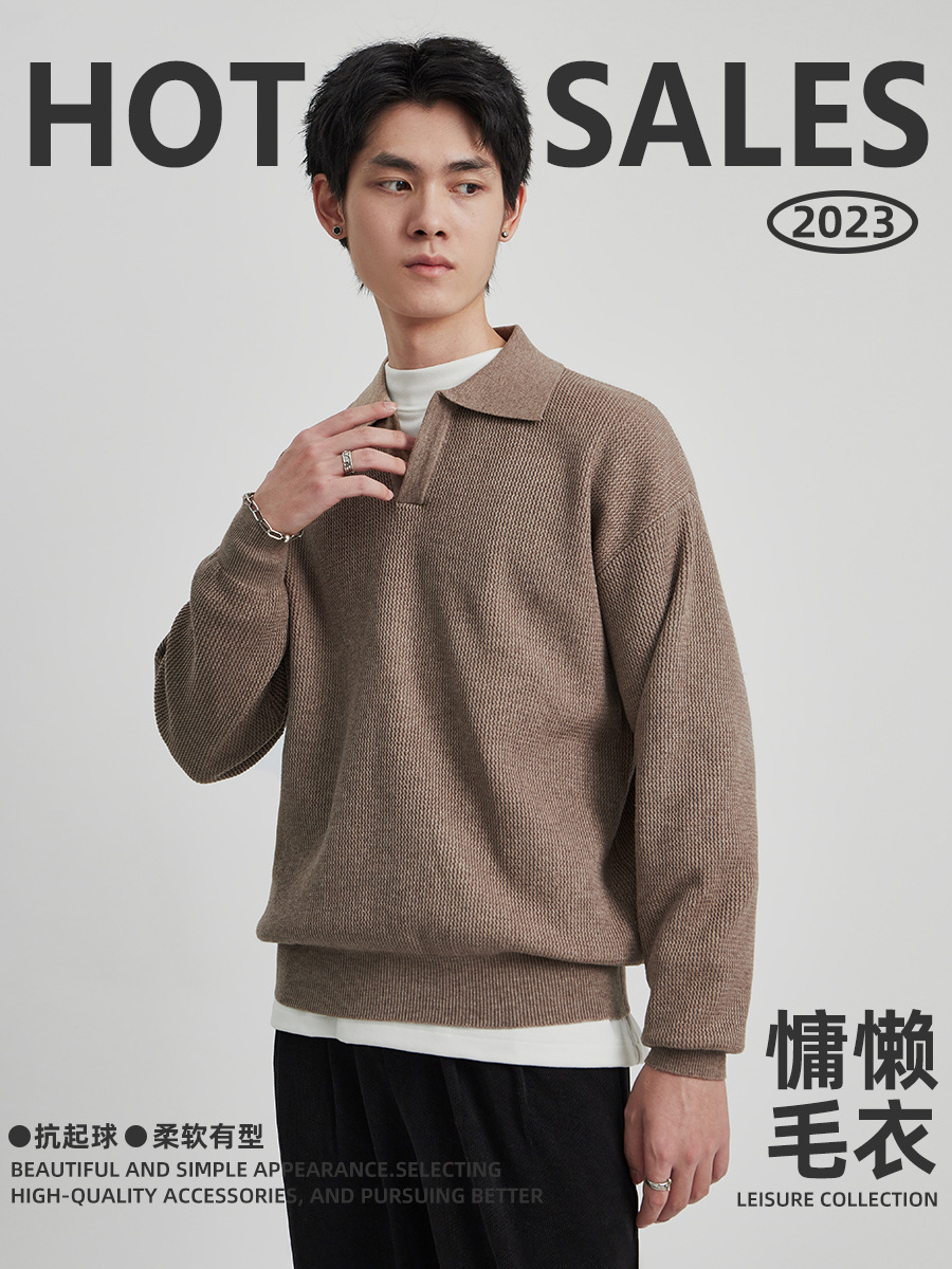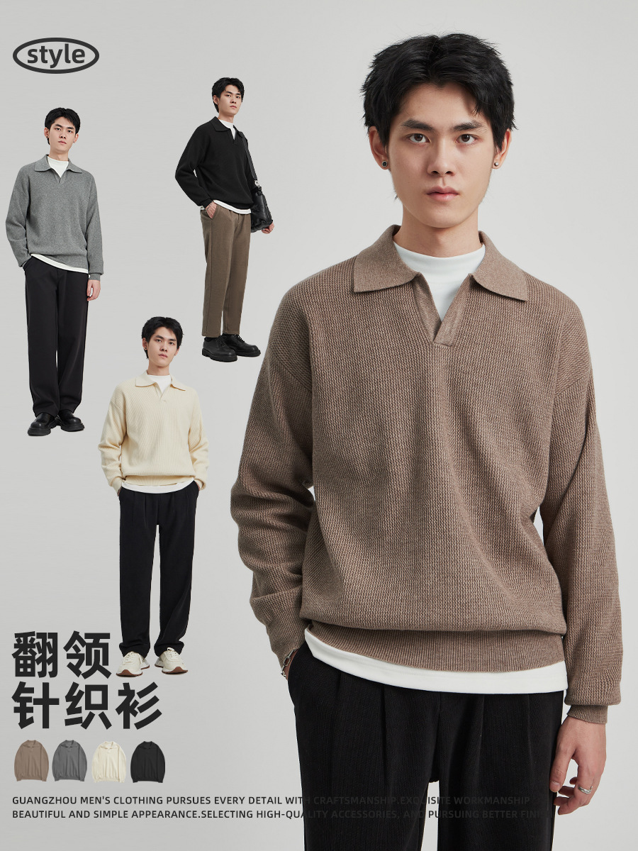 Главная страница > APO Мужской | свитер с лацканами мужской осенний анти-пиллинг с V-образным вырезом и длинным рукавом Топ свободный мужской свитер с воротником POLO