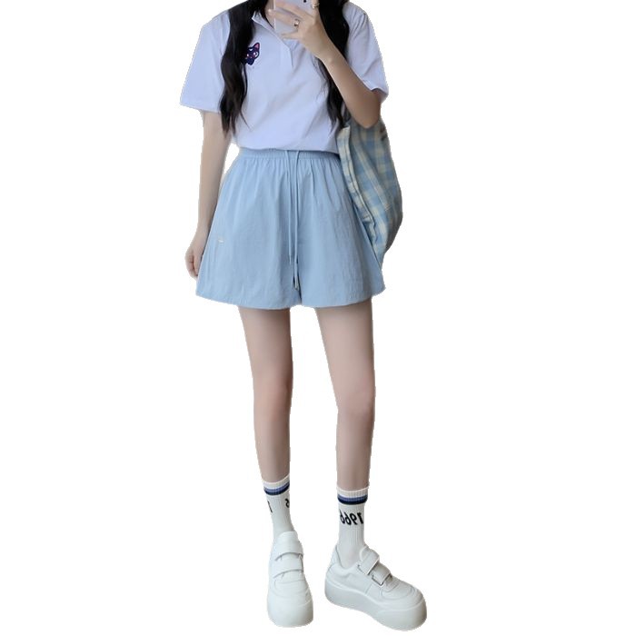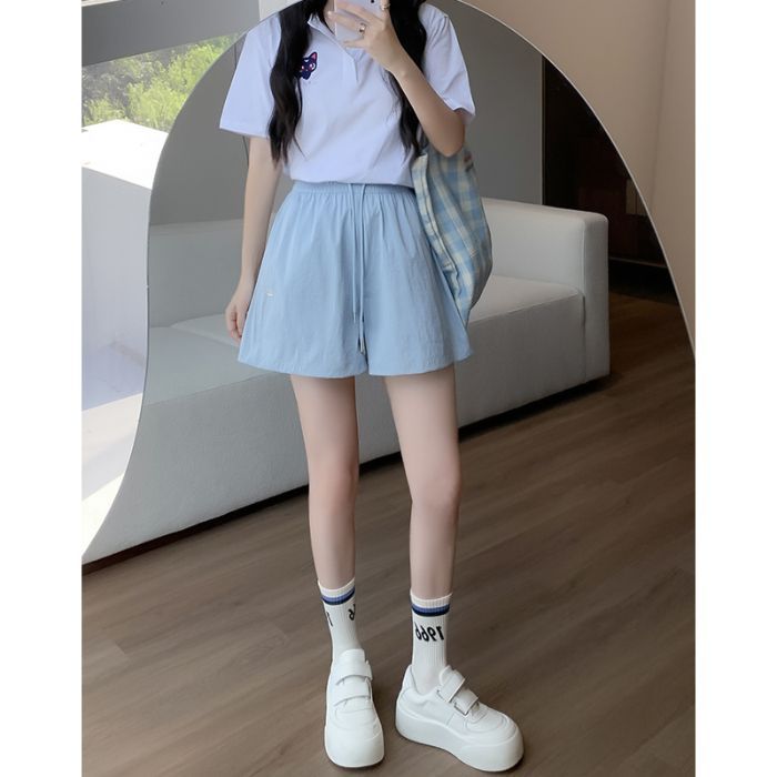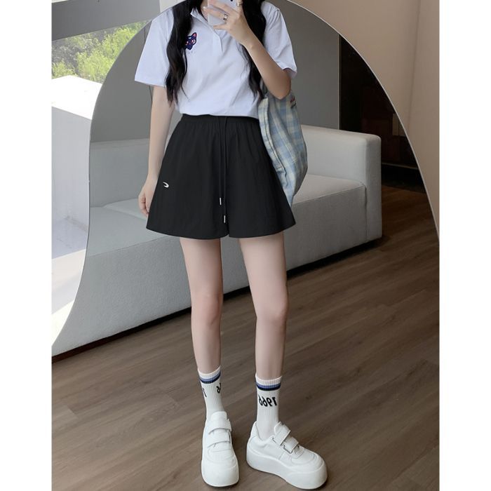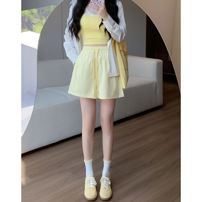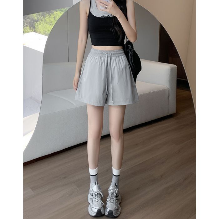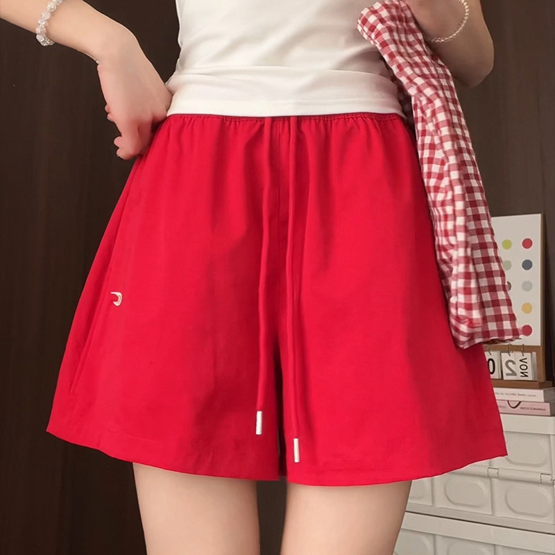 Главная страница > Красные быстросохнущие шорты для женщин, лето 2025, новая верхняя одежда с высокой талией, повседневные широкие брюки средней длины, рабочая одежда, спортивные брюки с пятью точками