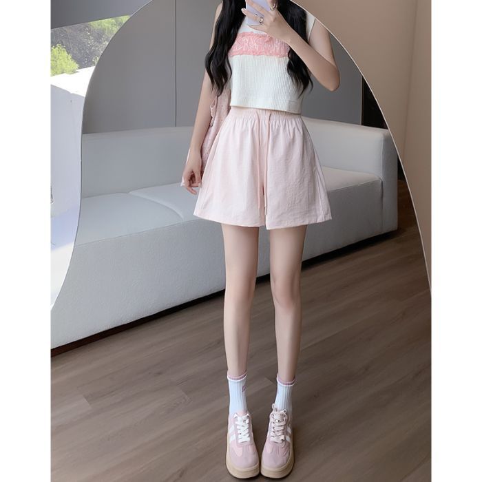 Красные быстросохнущие шорты для женщин, лето 2025, новая верхняя одежда с высокой талией, повседневные широкие брюки средней длины, рабочая одежда, спортивные брюки с пятью точками