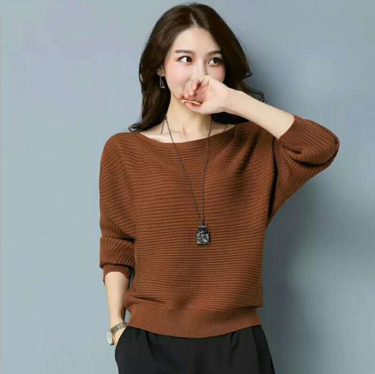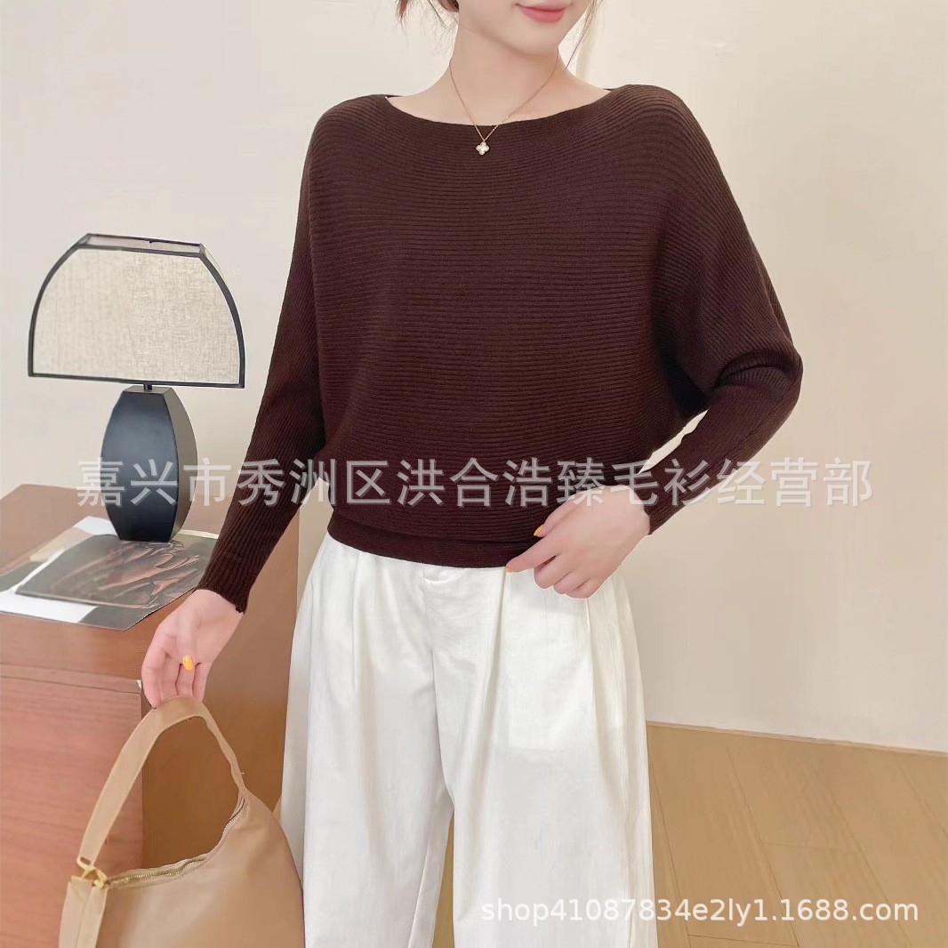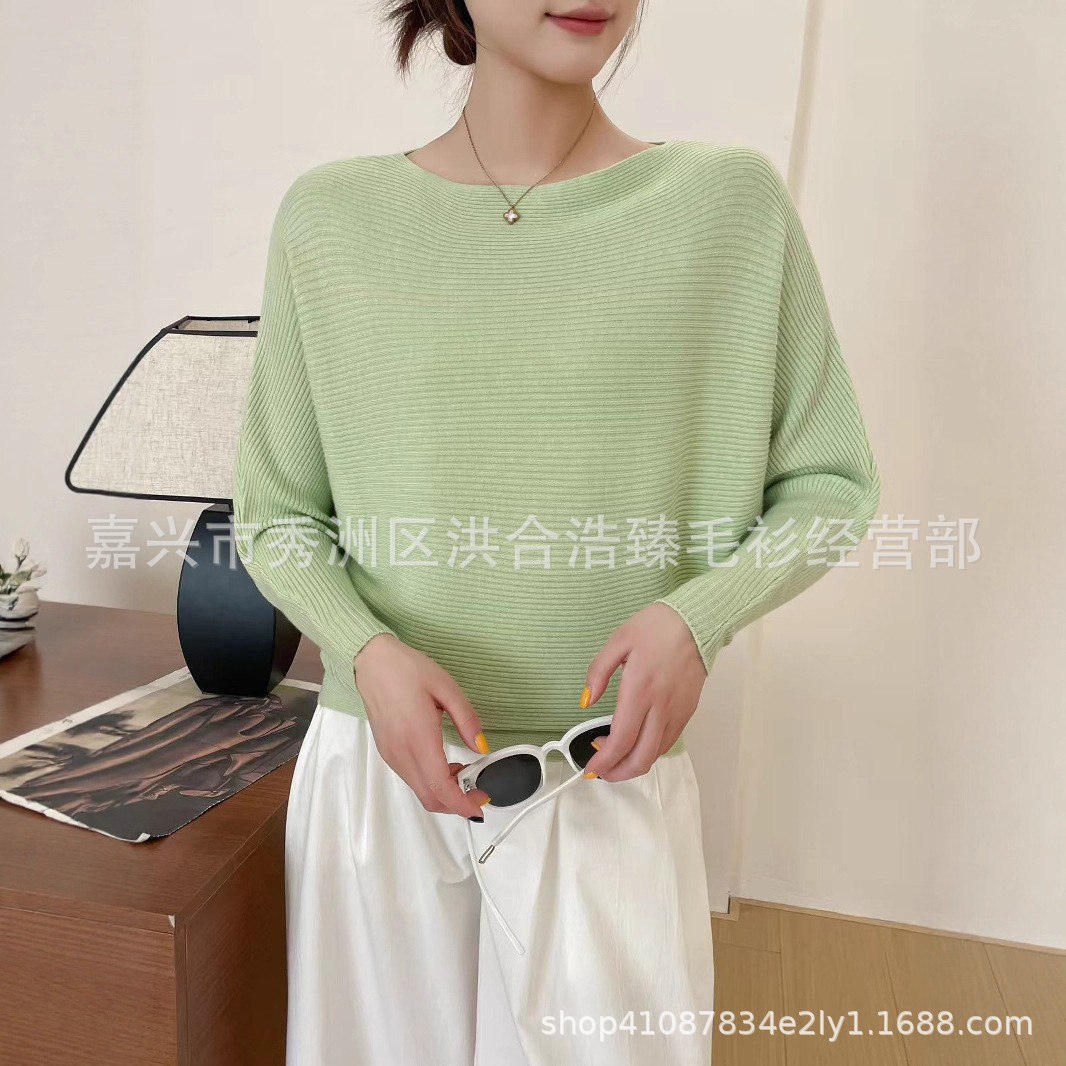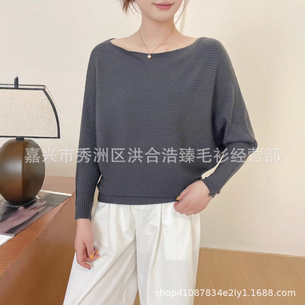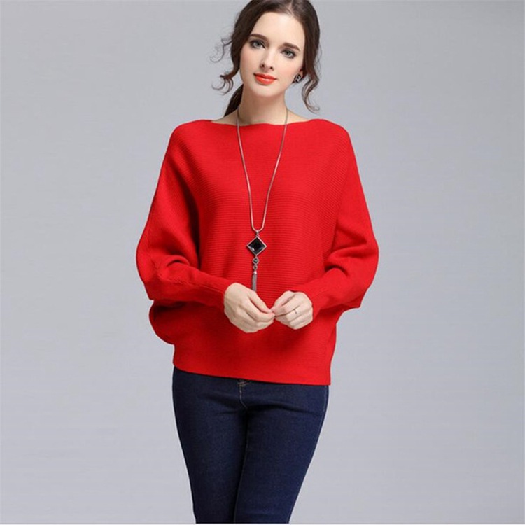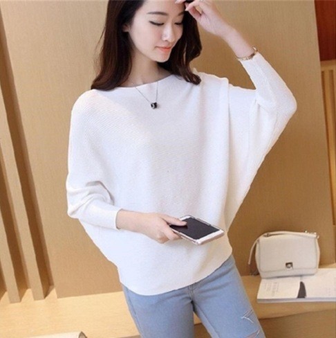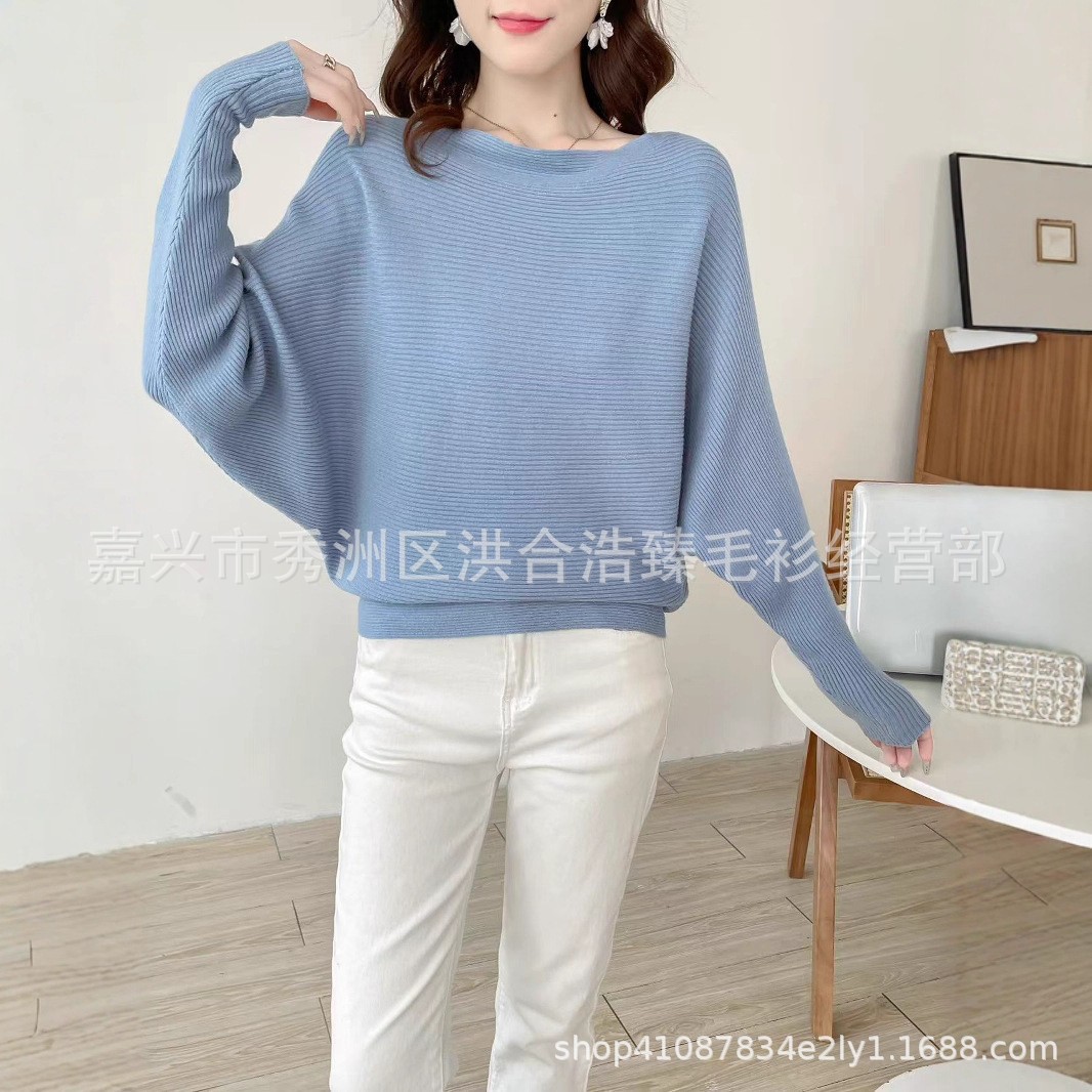 Главная страница > Весеннее платье 2024 новый рукав летучей мыши вязаный свитер женский топ свободный тонкий плюс размер воротник с длинными рукавами свитер женский