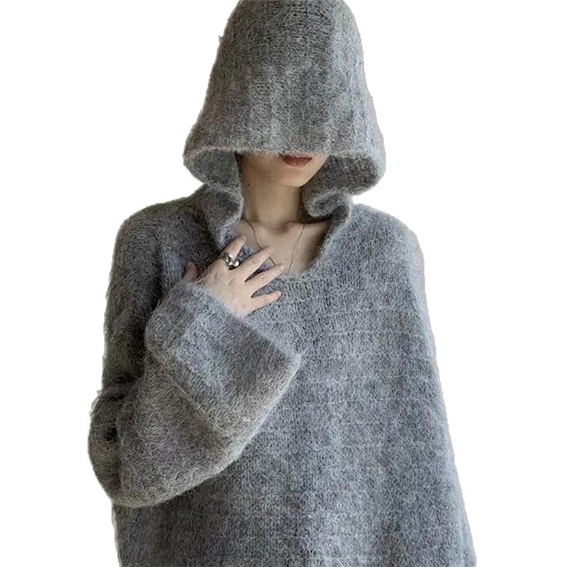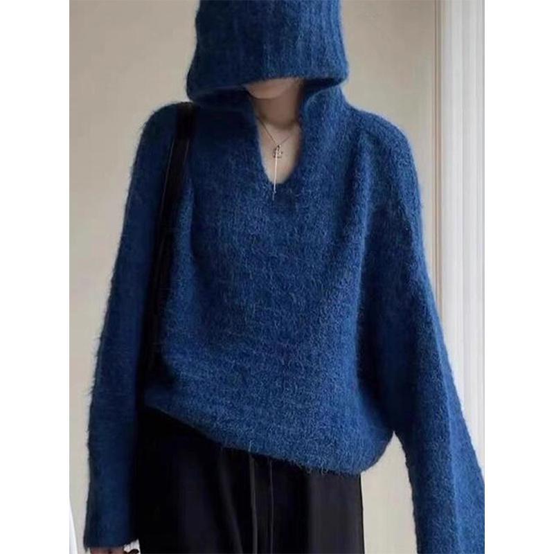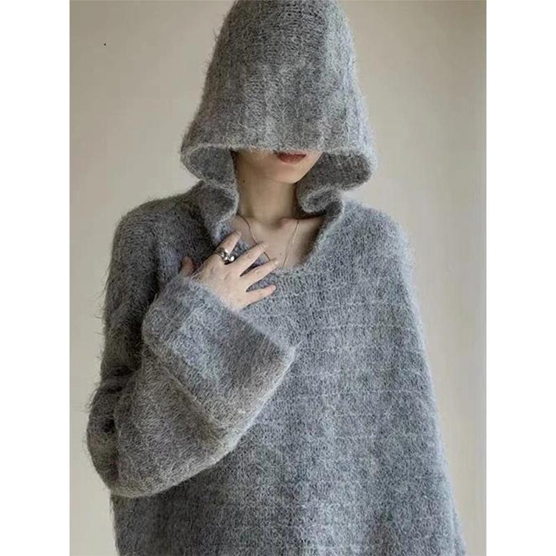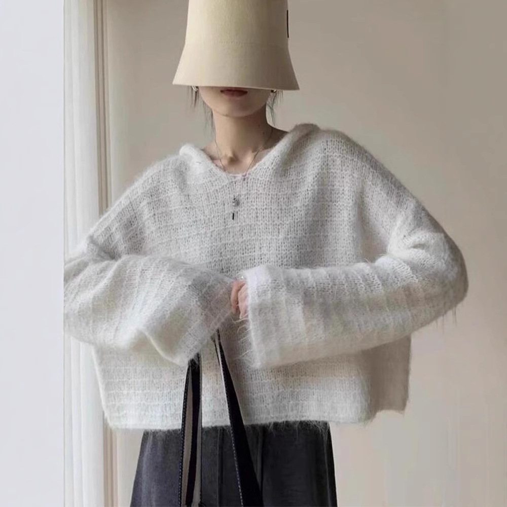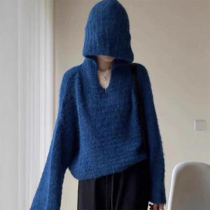 Главная страница > Европейский модный повседневный короткий вязаный топ с капюшоном для женщин, осень 2025, новый свободный свитер в ленивом стиле