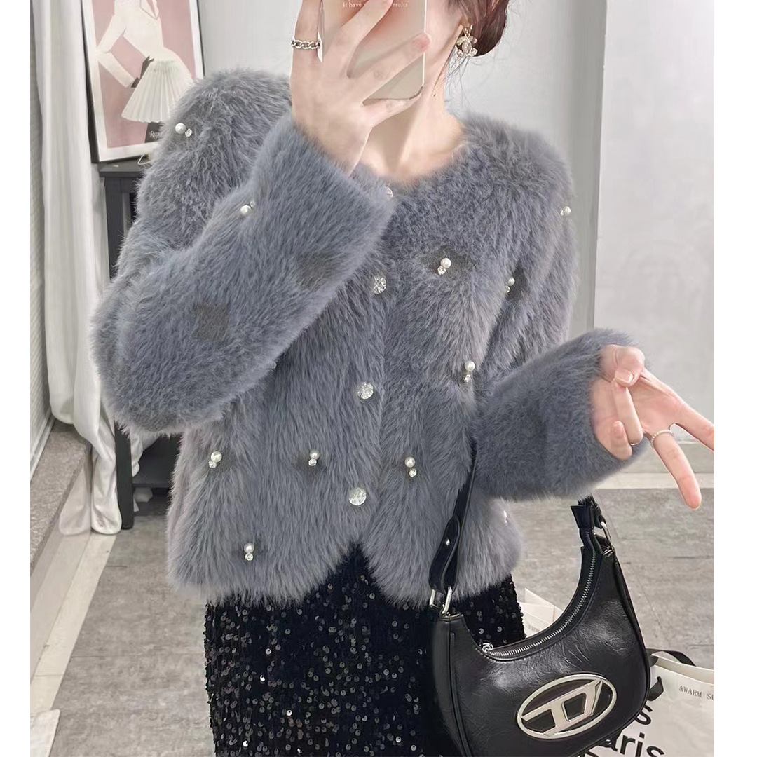 Главная страница > Трансграничный маленький ароматный темперамент короткий норковый бархат с бриллиантами кардиган осень-зима новый трикотаж из бисера свитер женская куртка