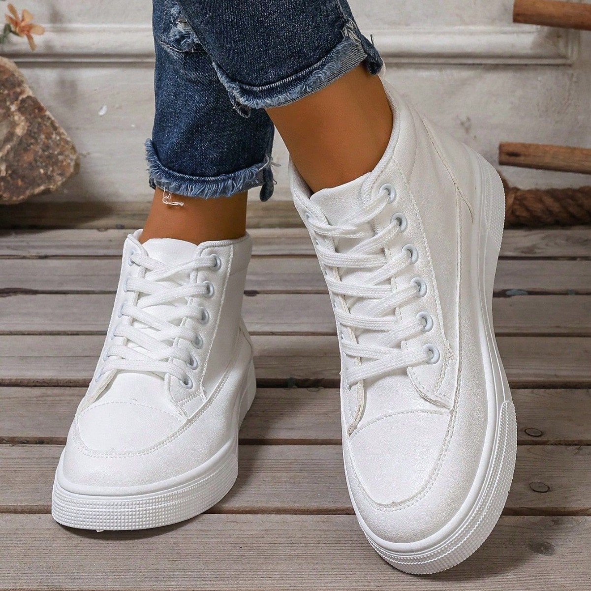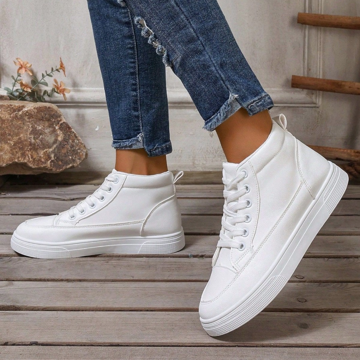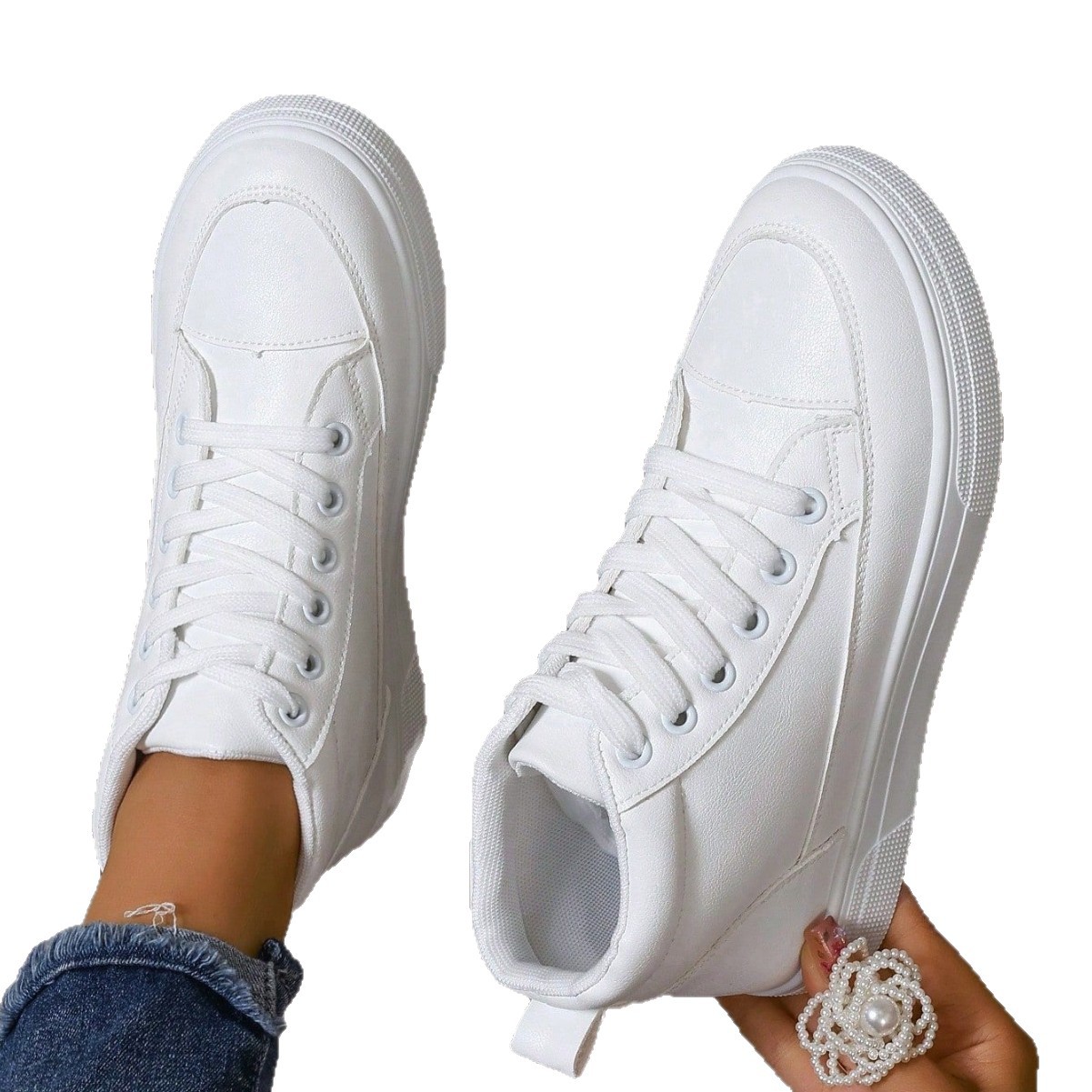 Главная страница > Белые туфли через границу, новые весенне-осенние кроссовки на плоской подошве, модная спортивная обувь, универсальная студенческая обувь большого размера на шнуровке, женская обувь с высоким берцем