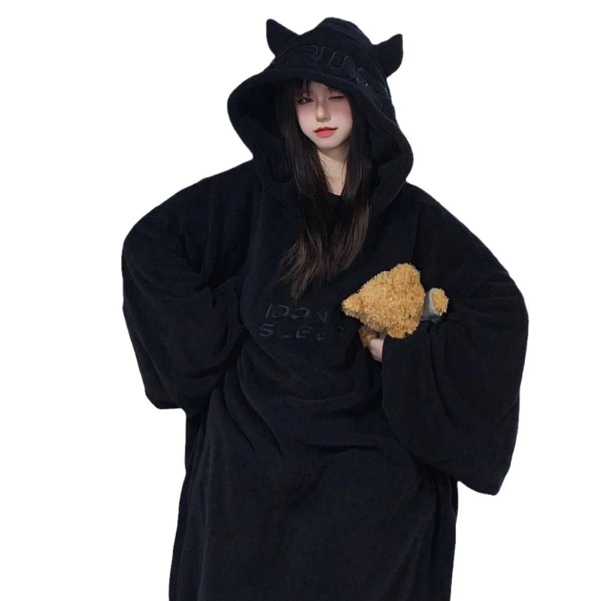 Маленькая ночная одежда дьявола женская осень-зима 2024 новый длинный коралловый бархат пара пижамы мужская бархатная толстая домашняя одежда