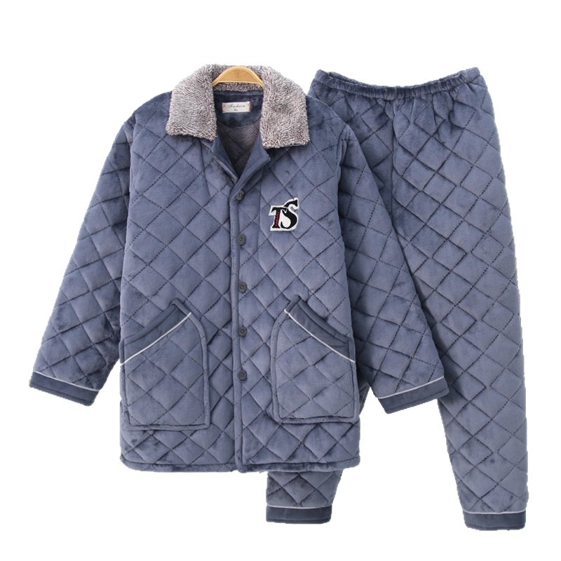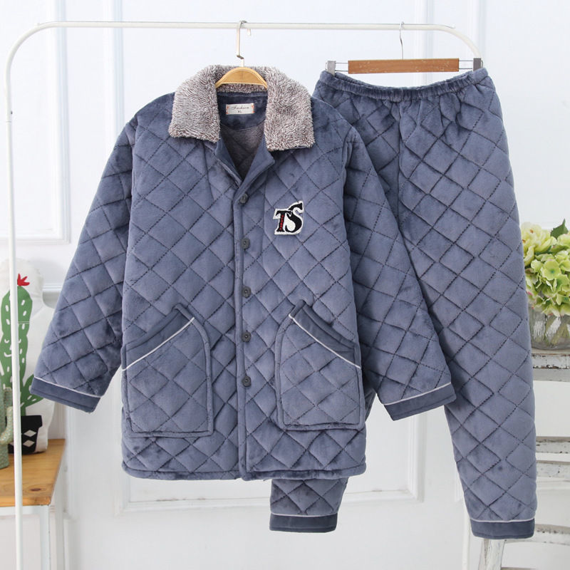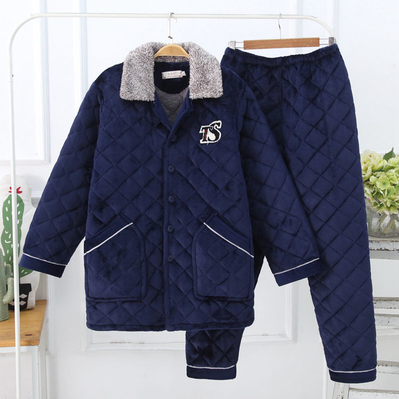 Главная страница > Зимние хлопчатобумажные пижамы мужские фланели плюс бархат утолщение среднего и пожилого размера теплый набор