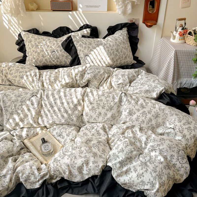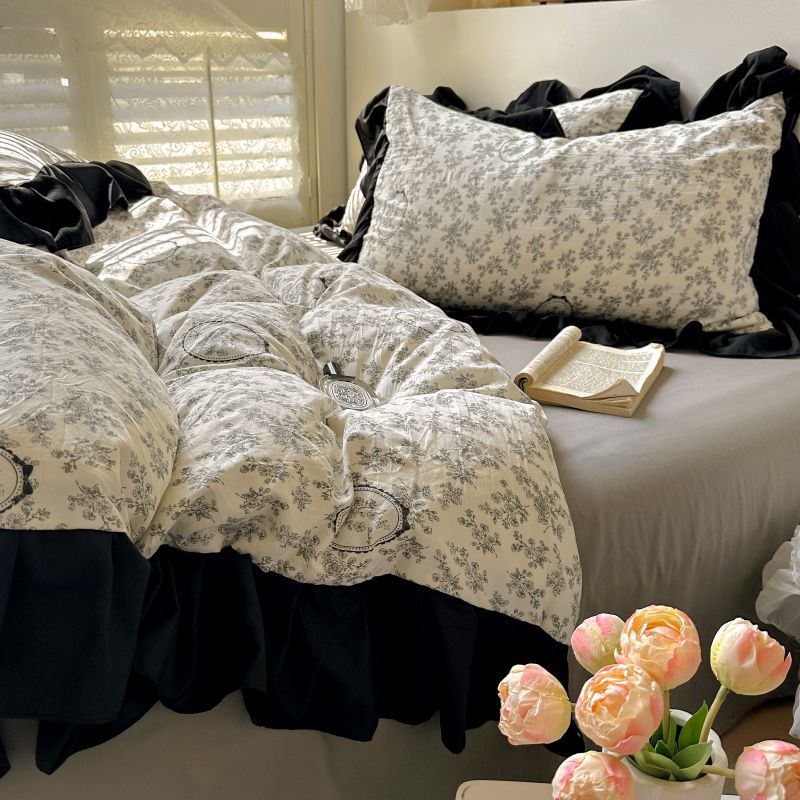 Главная страница > Французский ретро-комплект постельного белья из хлопчатобумажной ткани, имитирующей хлопок, в стиле принцессы, с кружевным покрывалом и простынями, высококачественный стиль Хепберн.