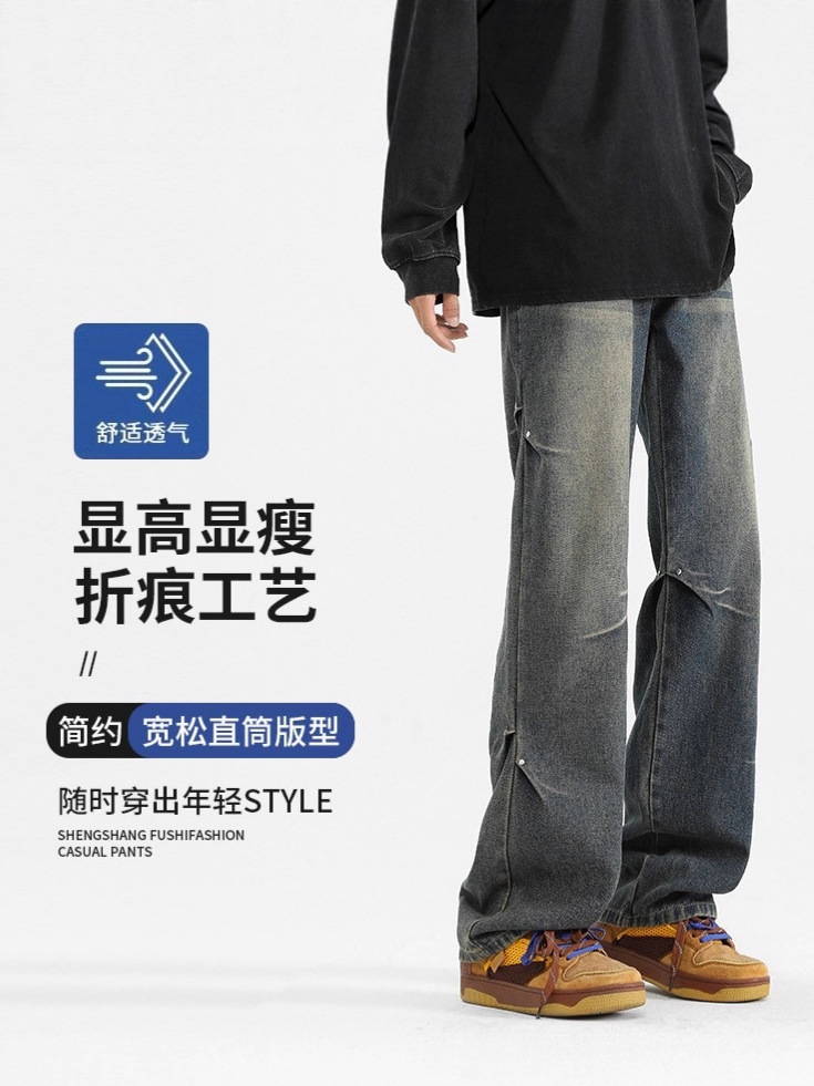 Главная страница > Мужские прямые джинсы-клеш в американском стиле с эффектом выстиранности, стильные, модные, в стиле ретро, повседневные длинные брюки с эффектом складок.