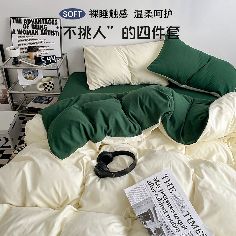 Главная страница > Класс a для детей и детей класса ins ветер сплошной цвет хлопка, набор из четырех частей, голые простыни, стеганое одеяло, студенческая кровать, набор из трех частей