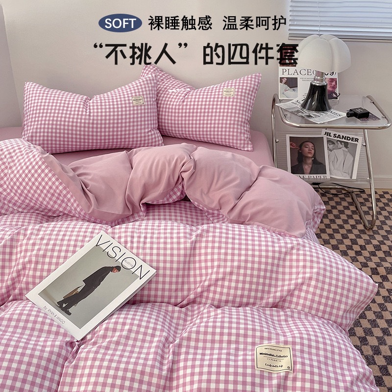 Класс a для детей и детей класса ins ветер сплошной цвет хлопка, набор из четырех частей, голые простыни, стеганое одеяло, студенческая кровать, набор из трех частей