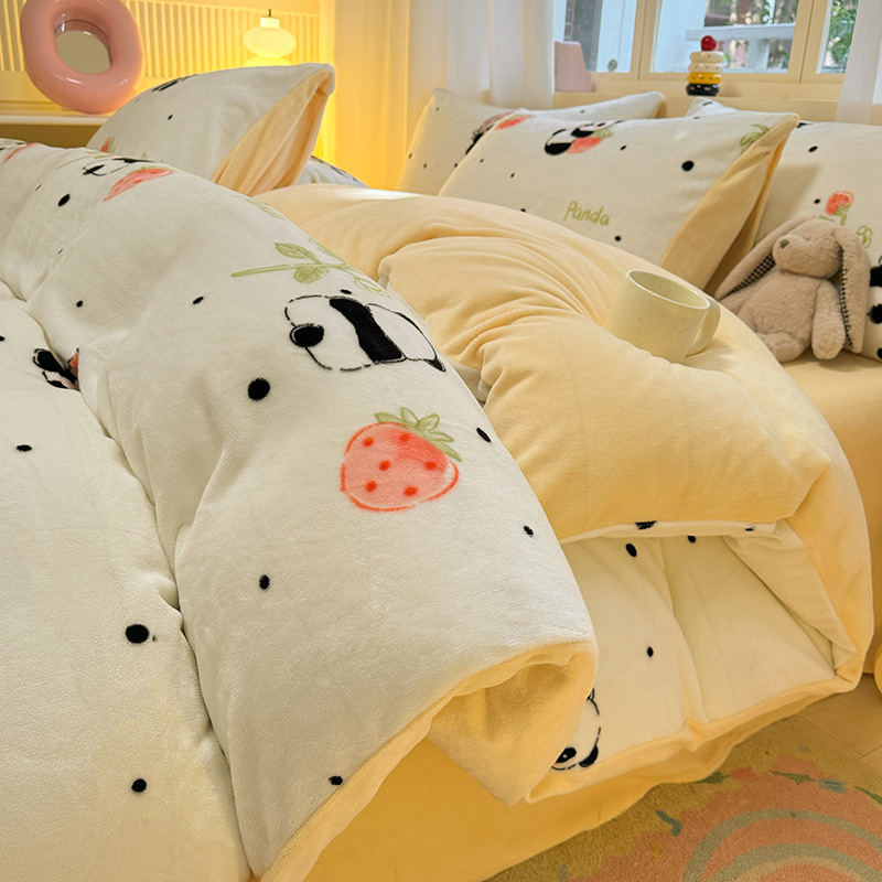 2024 новый зимний толстый молочный бархат набор из четырех частей двухсторонний коралловый фланелевый стеганое одеяло набор простыни из трех частей