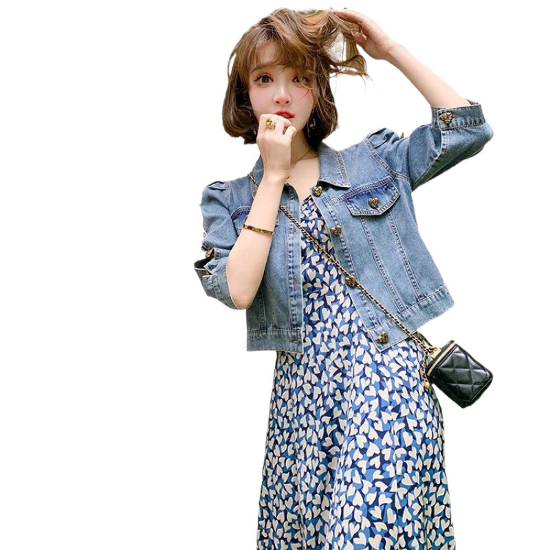 Любовь золотая пряжка ретро синий джинсовый пиджак женская весна лето новый дизайн чувство ниши свободный внешний короткий пиджак