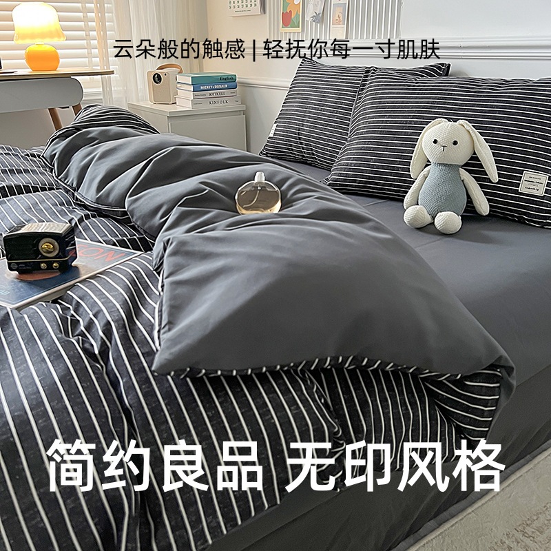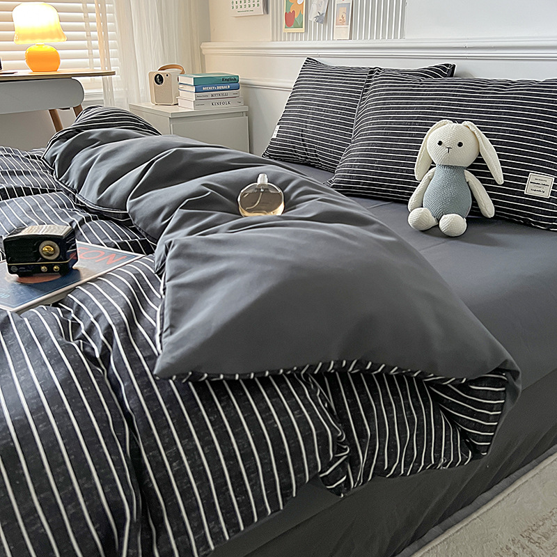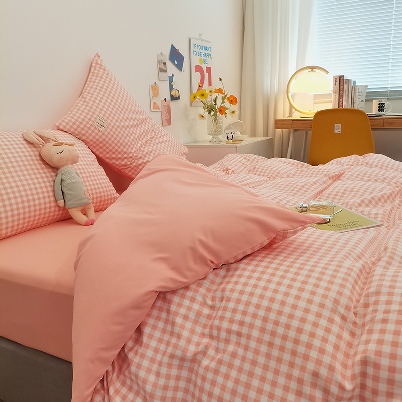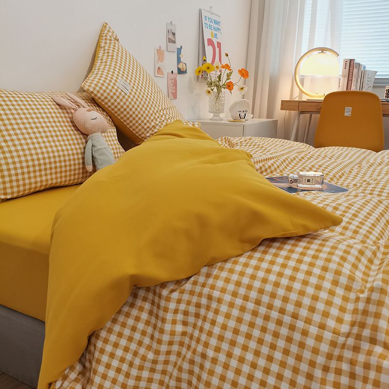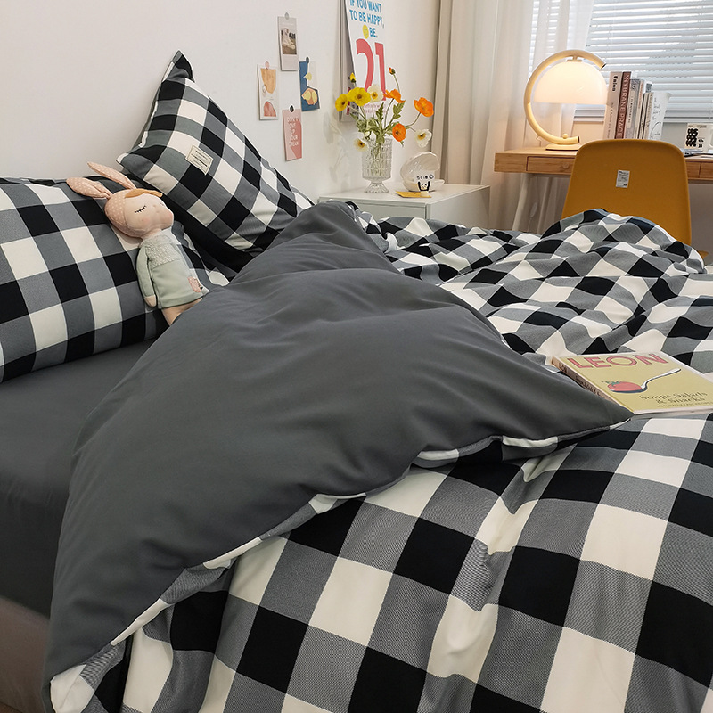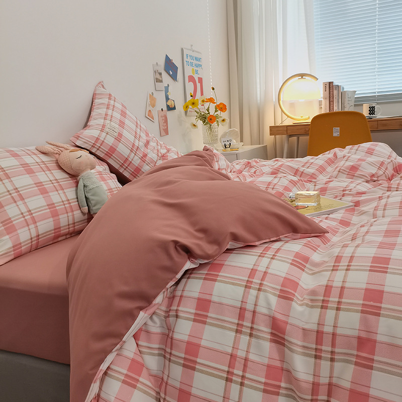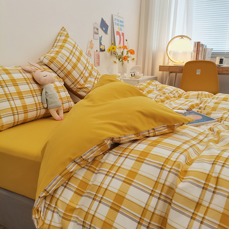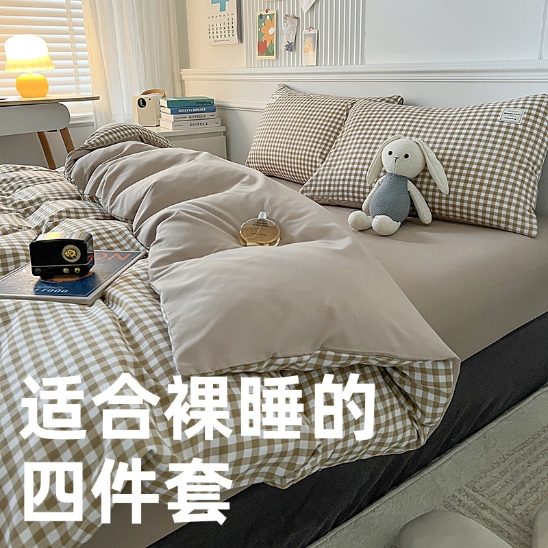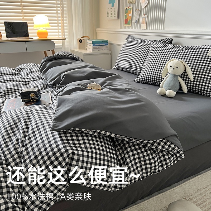 Главная страница > Комплект из четырех предметов из чистого хлопка, простыня из неокрашенного хлопка, постиранный, пододеяльник, простыня на резинке, комплект из трех предметов в клетку для студенческого общежития, клетчатый стиль.